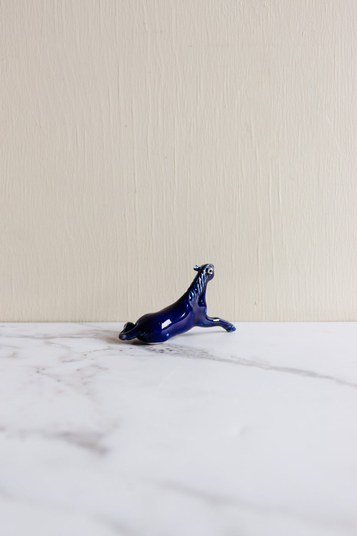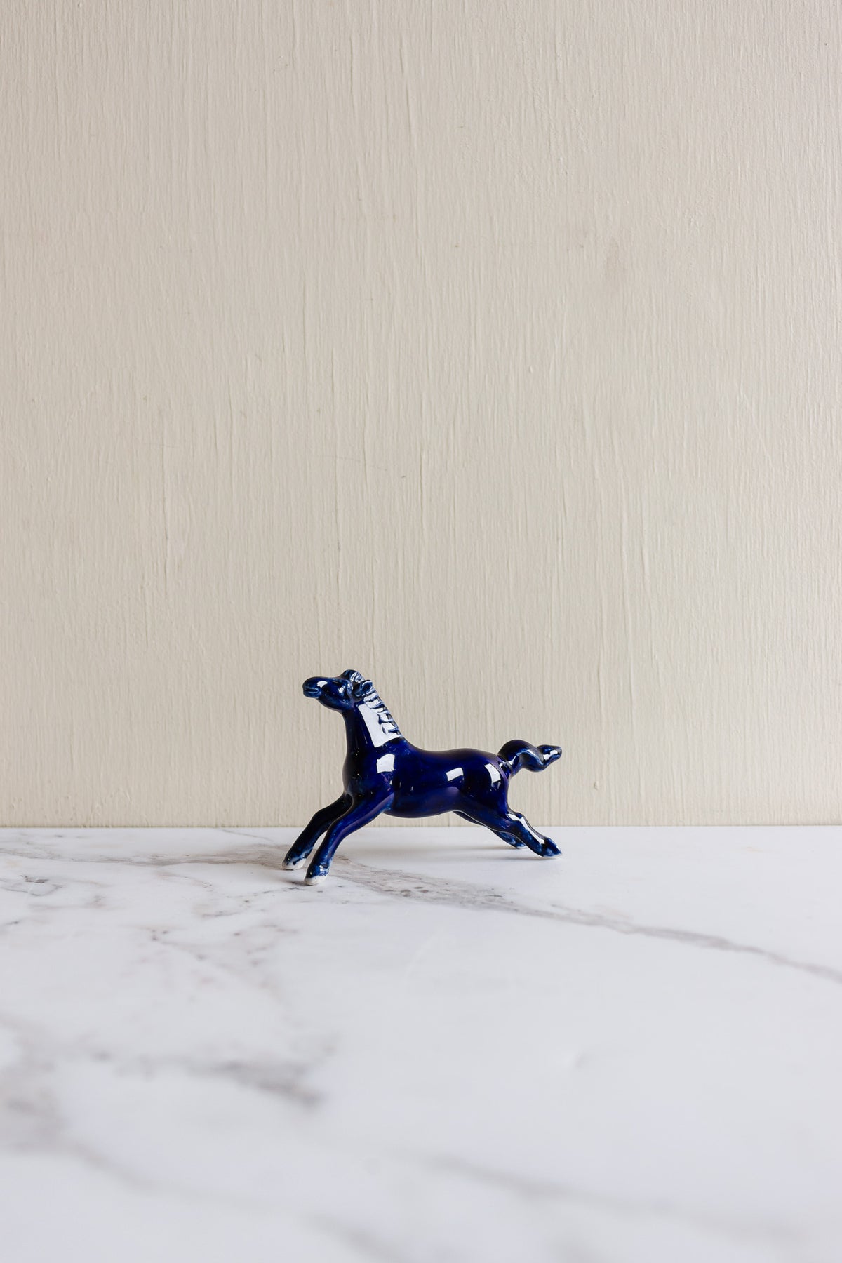 A pair of sweet vintage french cobalt blue porcelain horses. These decorative beauties are ready to add to a vignette and add a bit of "je ne sais quoi" to your space. Sold as a set of 2.