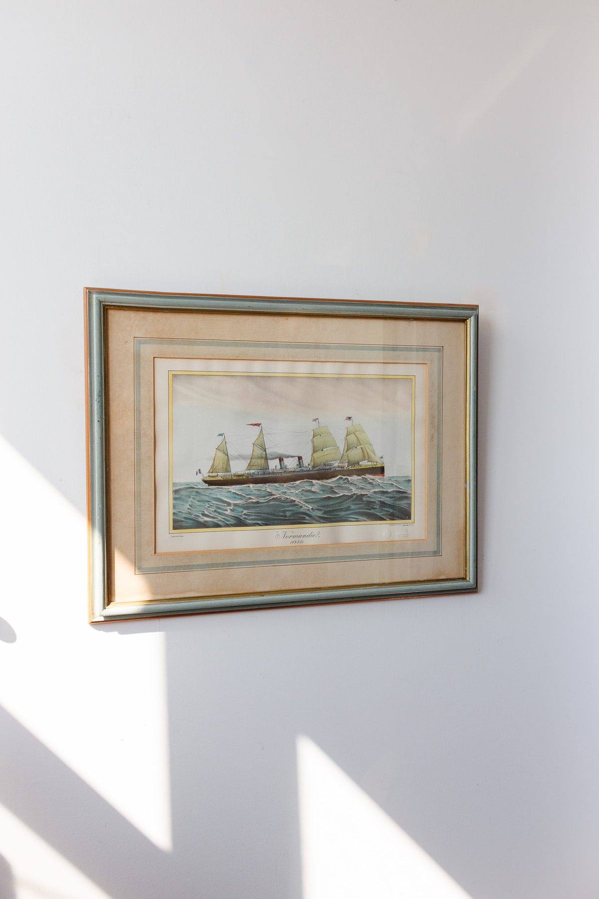This piece titled "Normandie 1885" is made by Edizioni Ponte Vecchio, an Italian publishing house based in Florence, specializing in high-quality hand-colored prints. Established in the 1930s, it became well-known for producing fine art reproductions.