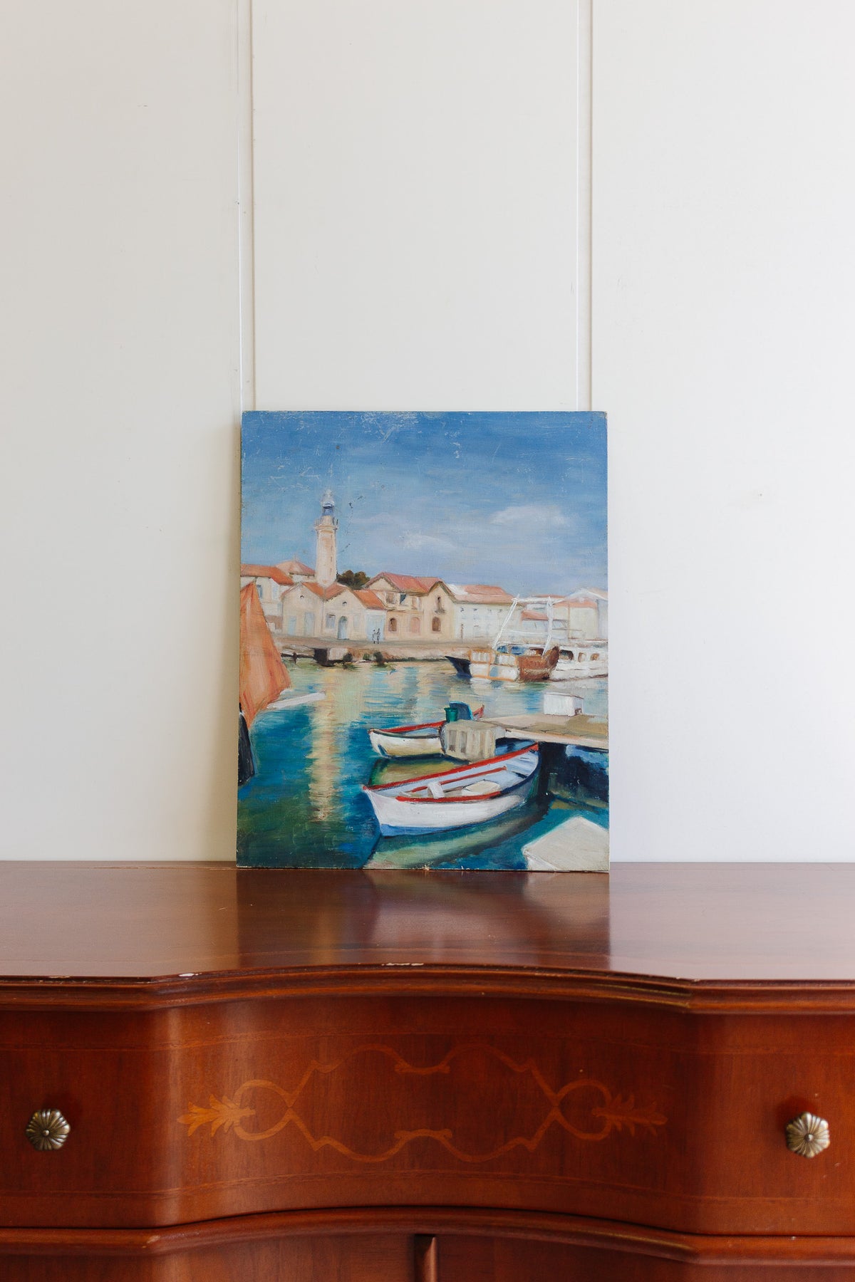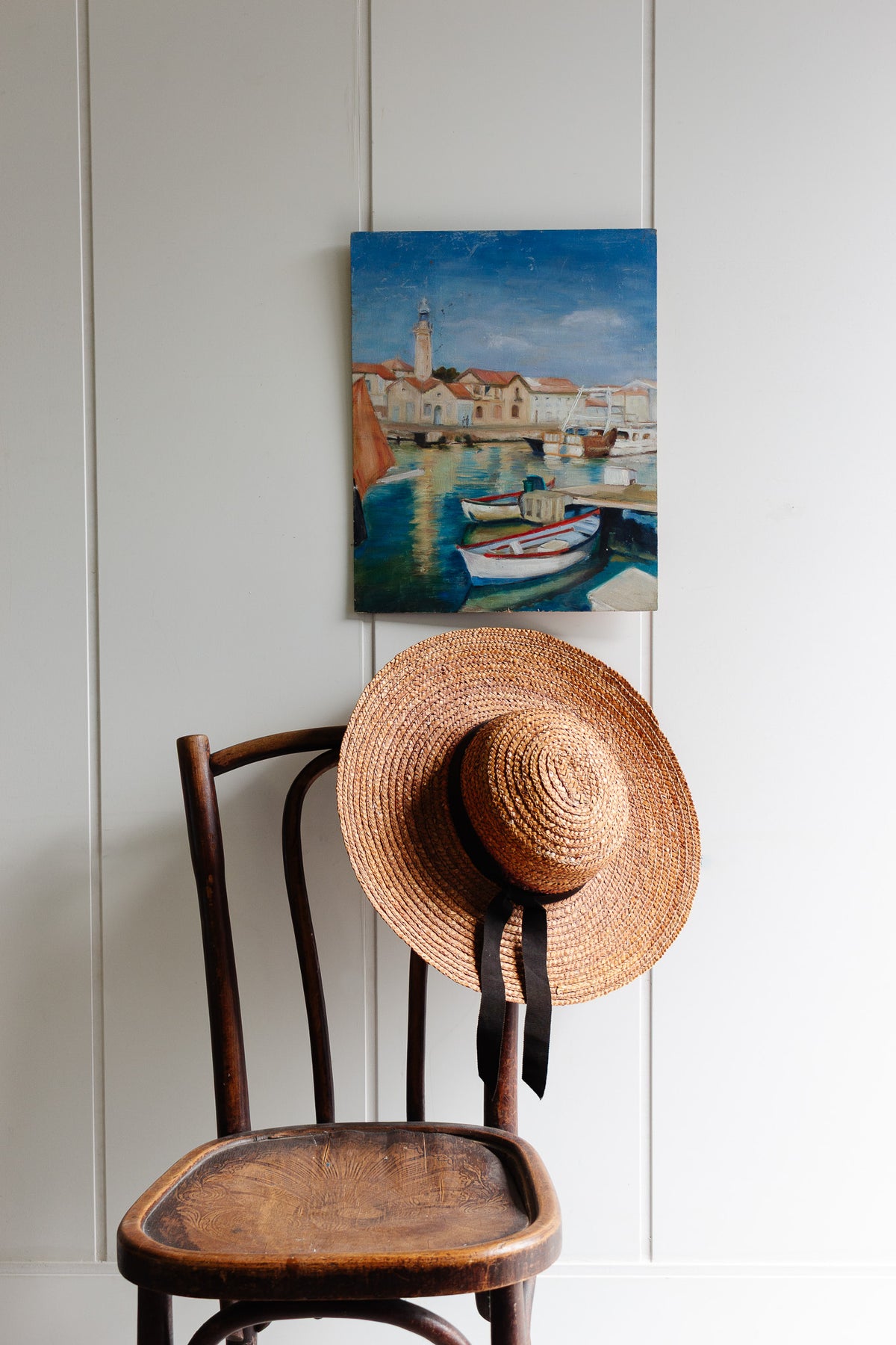 You know we love anything nautical themed. This vintage french oil on board in beautiful bold colors once lived in a home in Marseille. Now it's ready to start a new life in yours!