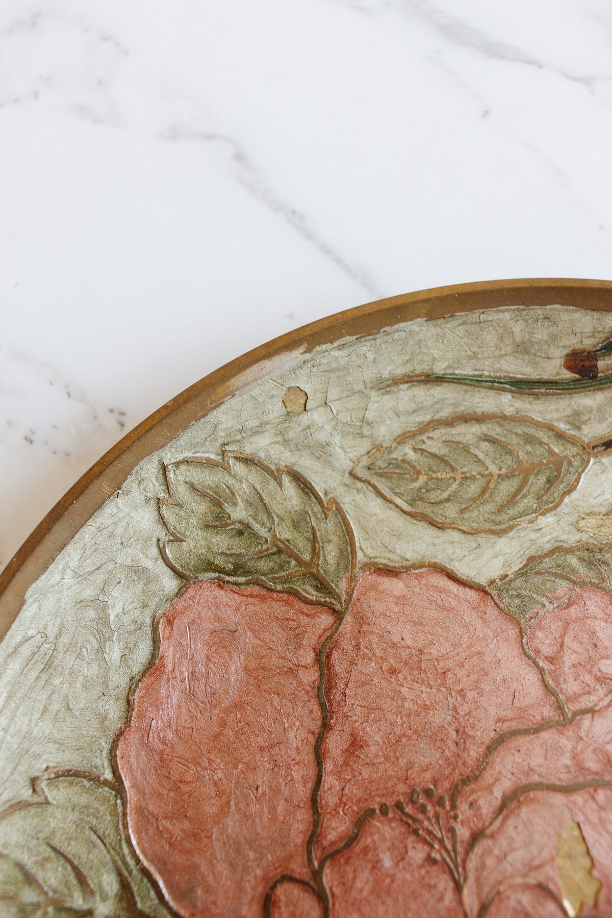 This sweet vintage cloisonné plate is perfect for rings, jewelry, or change, but was origonally designed to hang on the wall. Cloisonné is an ancient decorative technique where metal wires or strips create compartments (cloisons) on a surface, which are then filled with enamel to create intricate, colorful designs. Sourced from a brocante in Marseille.