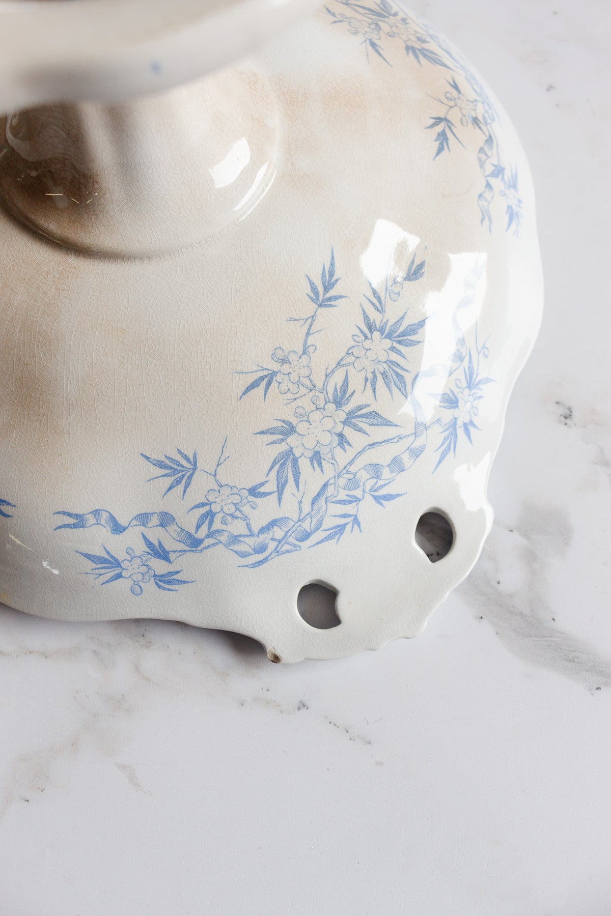 antique french u&Cie sarreguemines compotier with reticulated handles