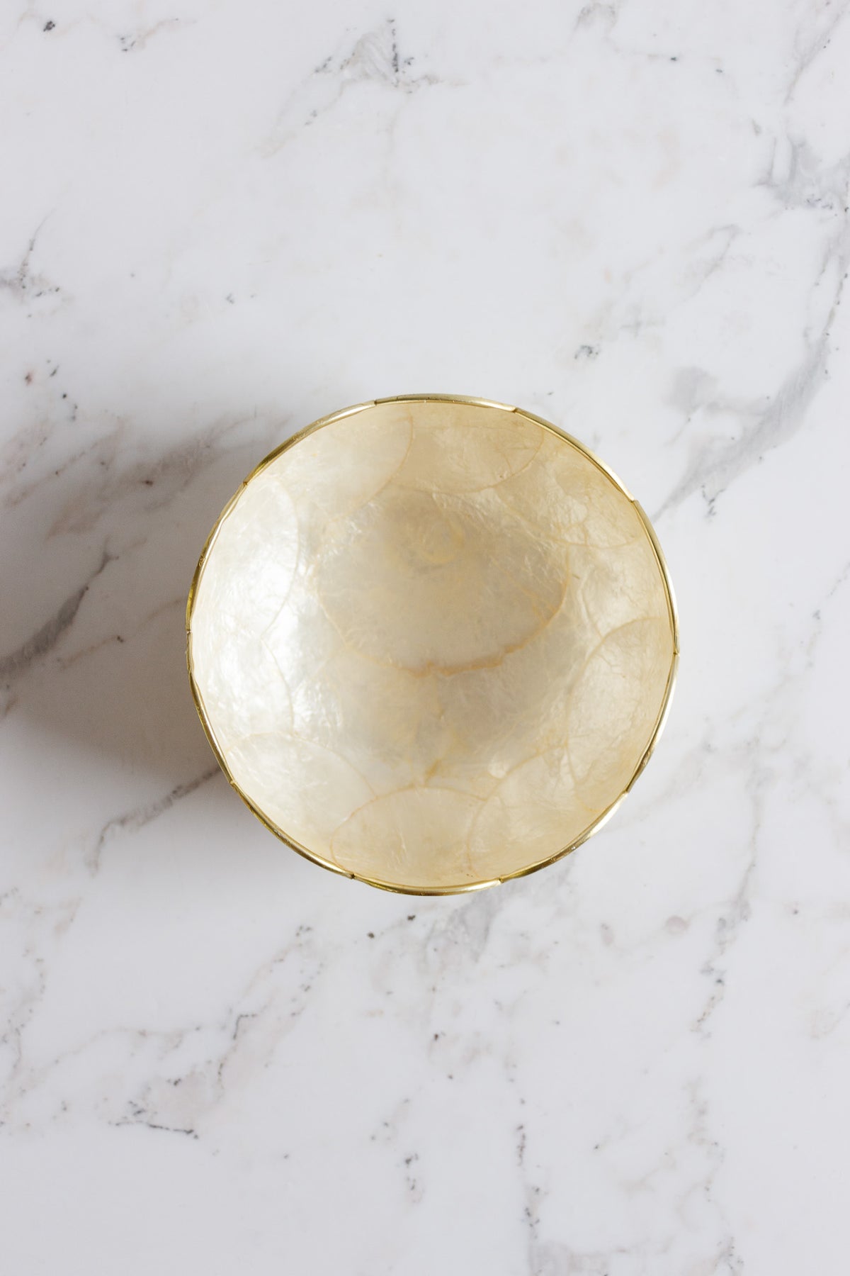 This pair of vintage bowls are made of capiz shell: the translucent, lightweight shells of windowpane oysters. Known for their natural shimmer and delicate appearance, they were most popular in mid-century design.