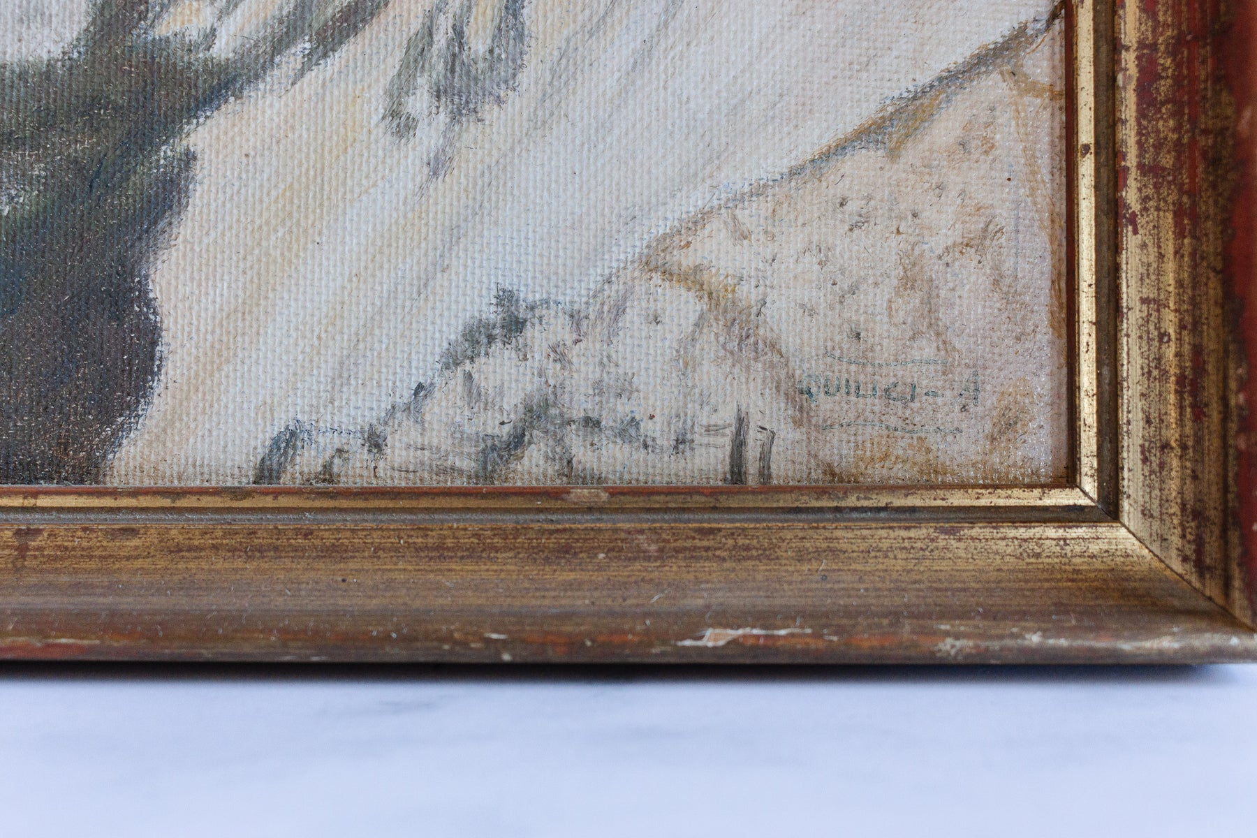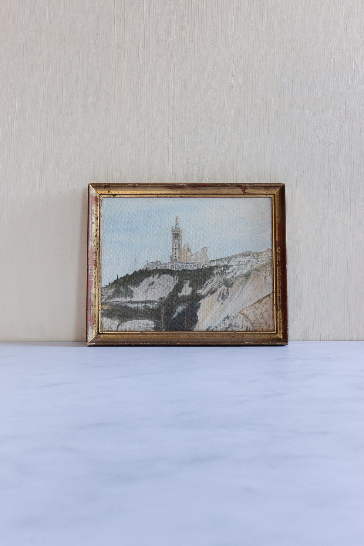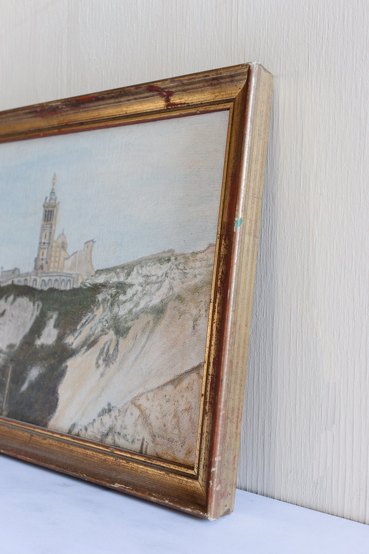 Vintage french oil on board sourced from a home in Marseille where it was once part of a living room gallery wall.