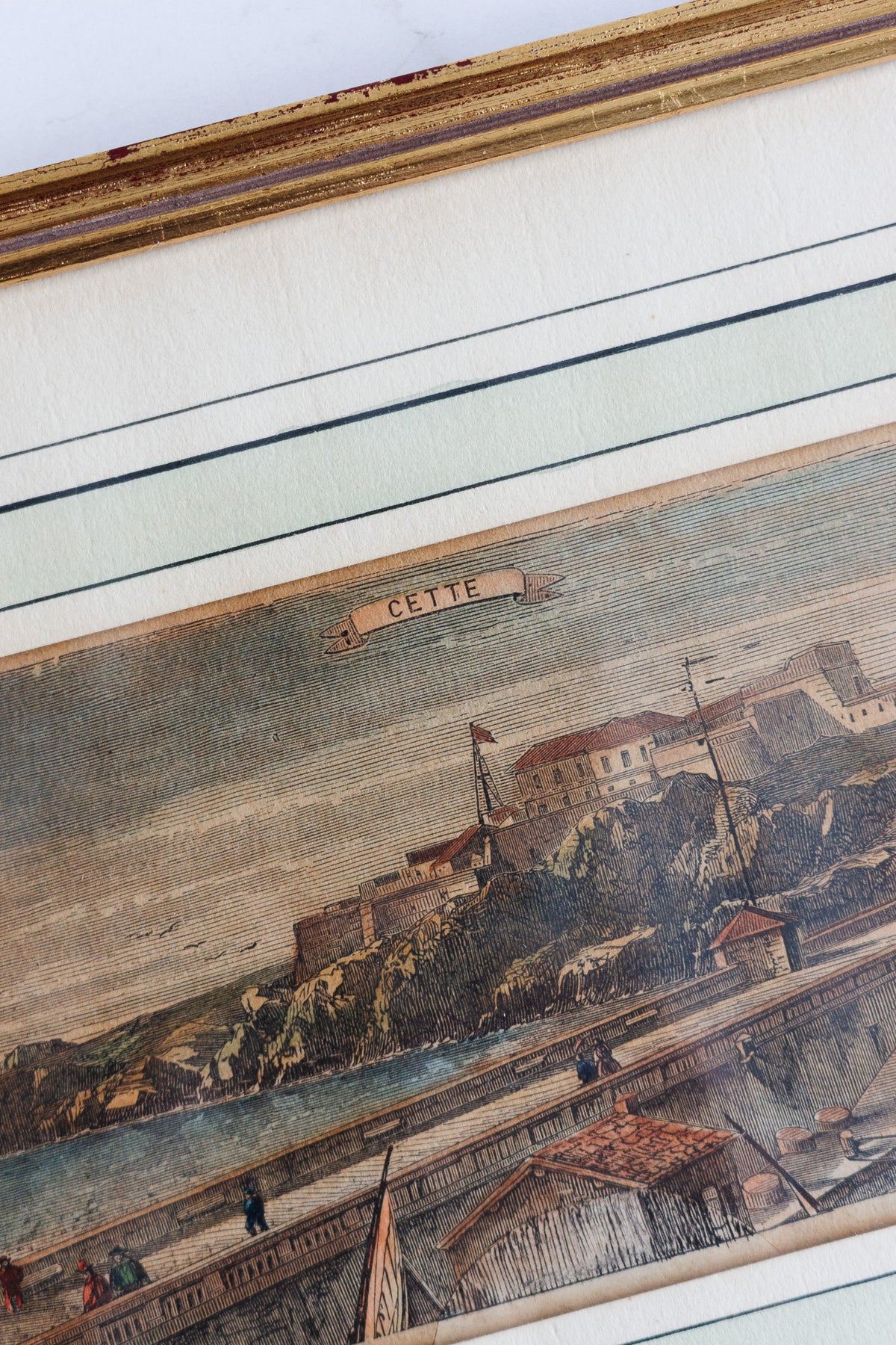 Framed, hand-colored engraving titled “CETTE” by known French artist Louis-Amable Crapelet (1822–1867), known for his evocative views of Egypt and Provençal port towns. This piece captures the lively harbor of Cette—now Sète—with ships, workers, and waterfront buildings rendered in soft, detailed tones. A beautifully atmospheric glimpse of 19th-century coastal life, sourced from a brocante in Marseille.