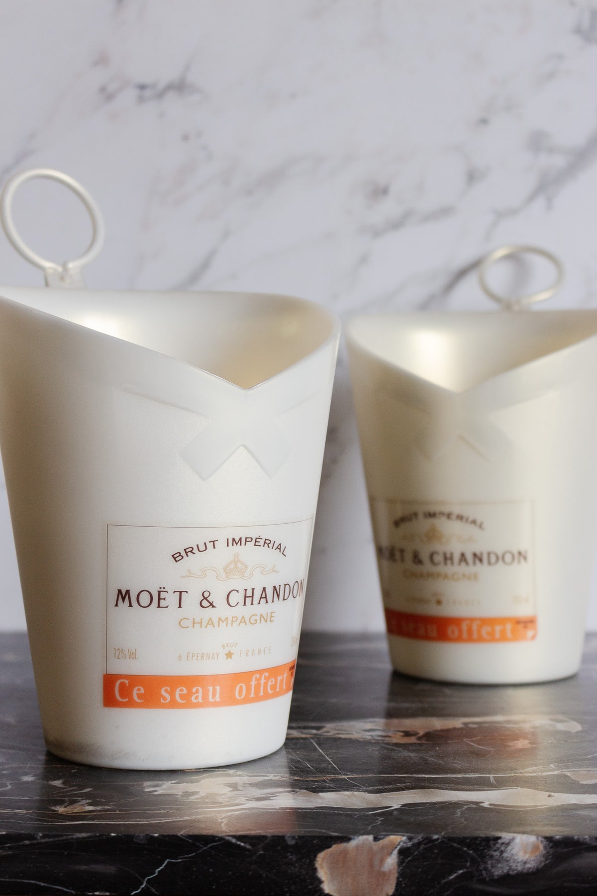 This vintage French white acrylic champagne bucket is marked with the vintner's name Moët & Chandon.  Perfect for the holidays!