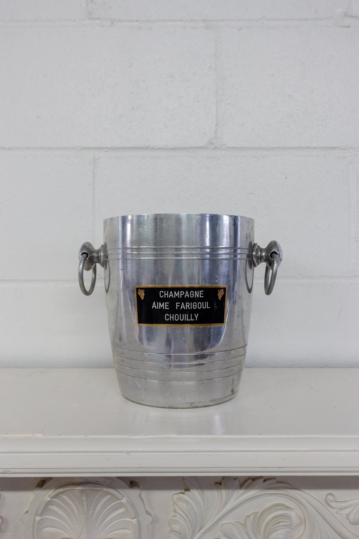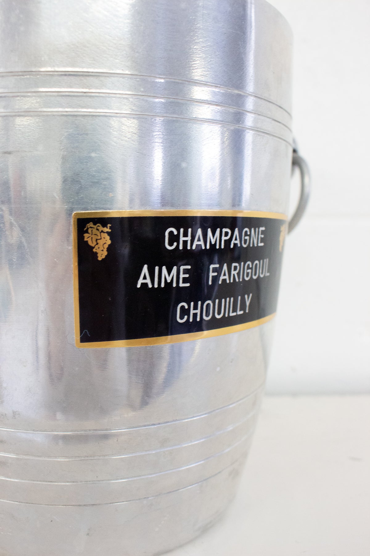 This vintage French aluminum champagne bucket is marked with the vintner's name Champagne Aime Farigoul Chouilly. We think these buckets are perfect not only for chilling drinks but also for a bouquet of fresh flowers. In good vintage condition, with signs of wear, age and use.