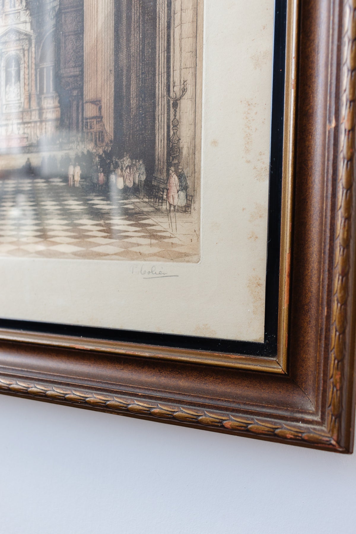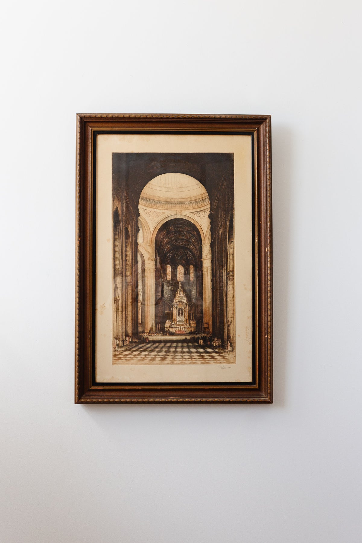 A vintage engraving of St. Paul’s Cathedral in London, originally created by Edward Sharland. Signed by the artist. Professionally framed under glass as shown.  Sourced from a brocante in the Loire Valley.