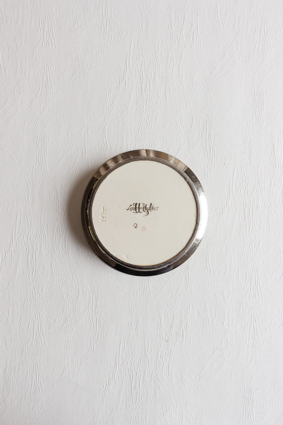rare antique french sarreguemines transferware and silver metal "sous-verre"