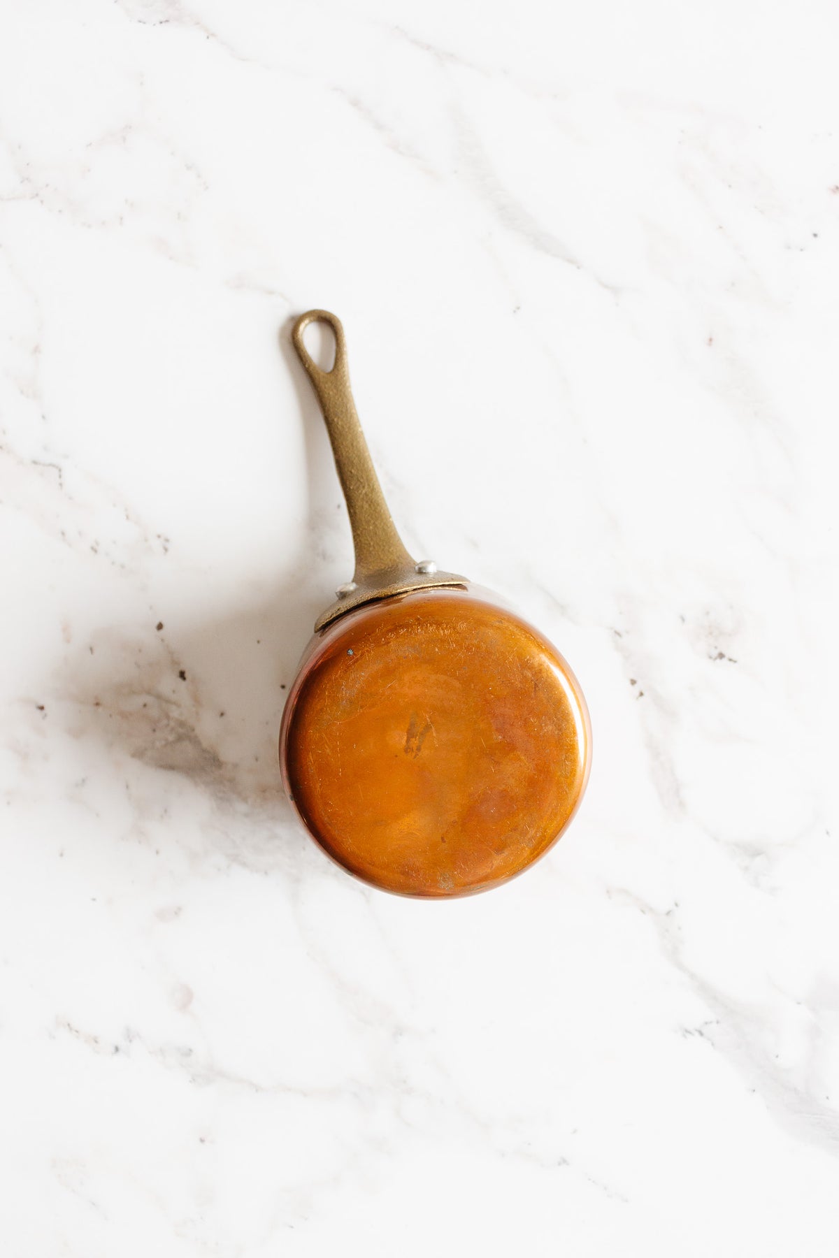 Gorgeous, hand forged French copper pot in a sweet "petit" size. We think they look fabulous  hung from a pot rack in all its beauty that only comes with age and use.
