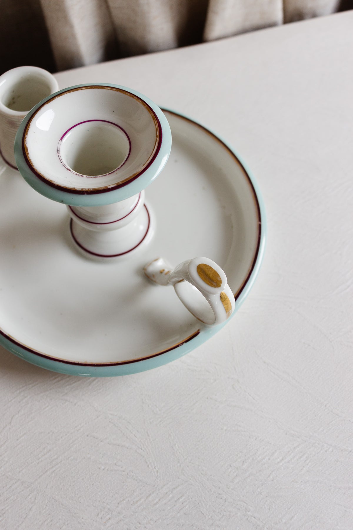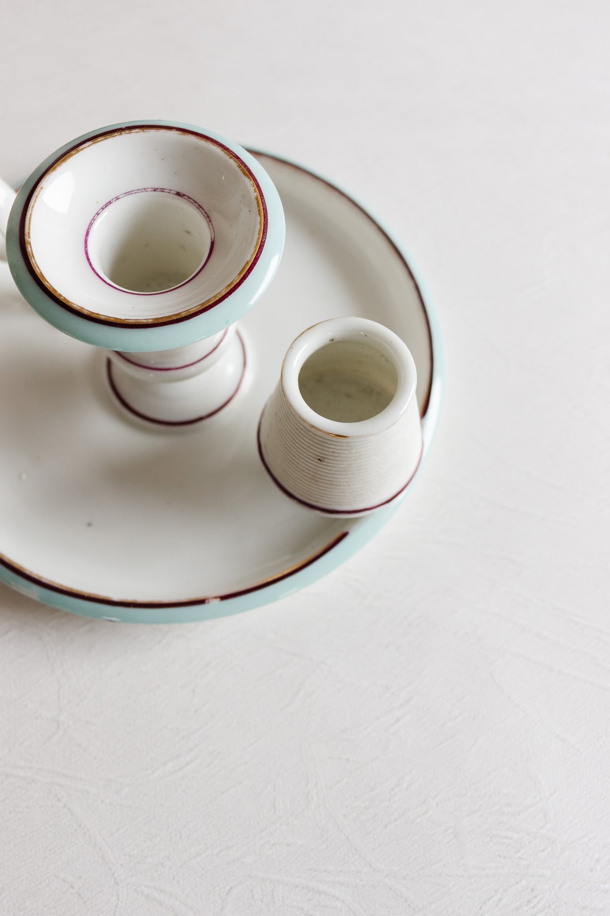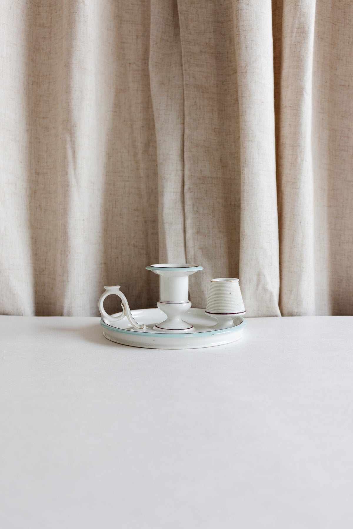 This unique piece, however, was used as a chamberstick.  Add a candle and the matches striker are close by.