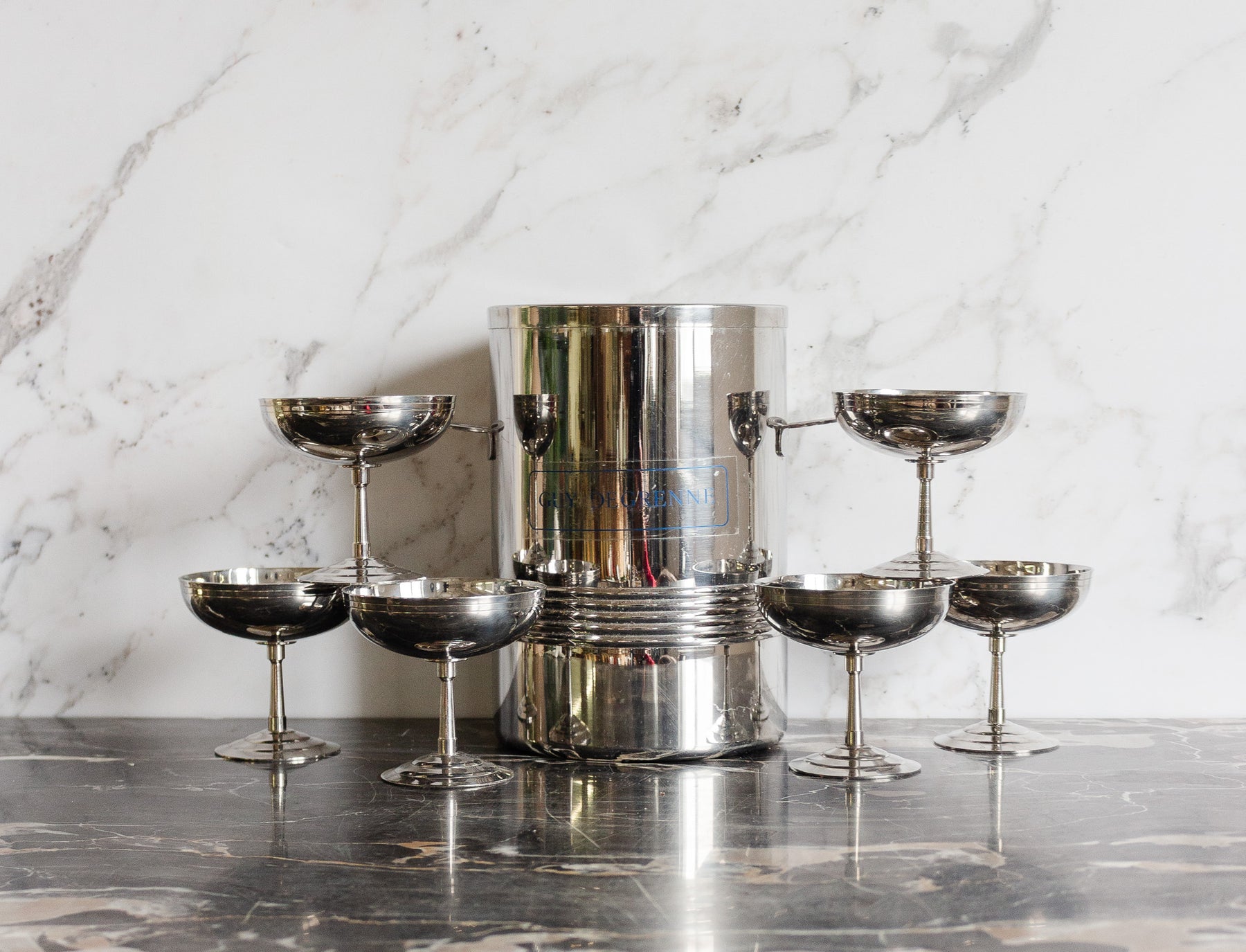 We've pictured them here with a vintage champagne bucket. Use these beauties as champagne coupes or for a chilled cocktail!