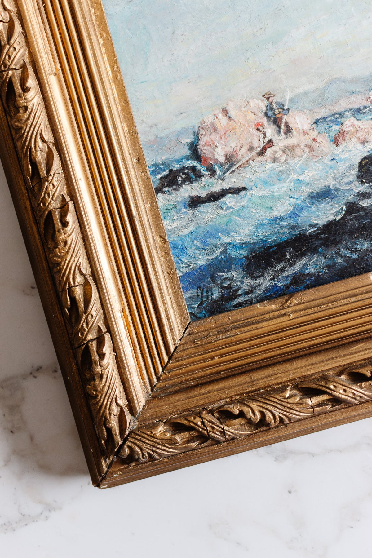 Antique french oil on board with incredible colours and life like waves, signed by the artist and housed in a quintessentially French gilt frame. Sourced from an estate in Aix-en-Provence.