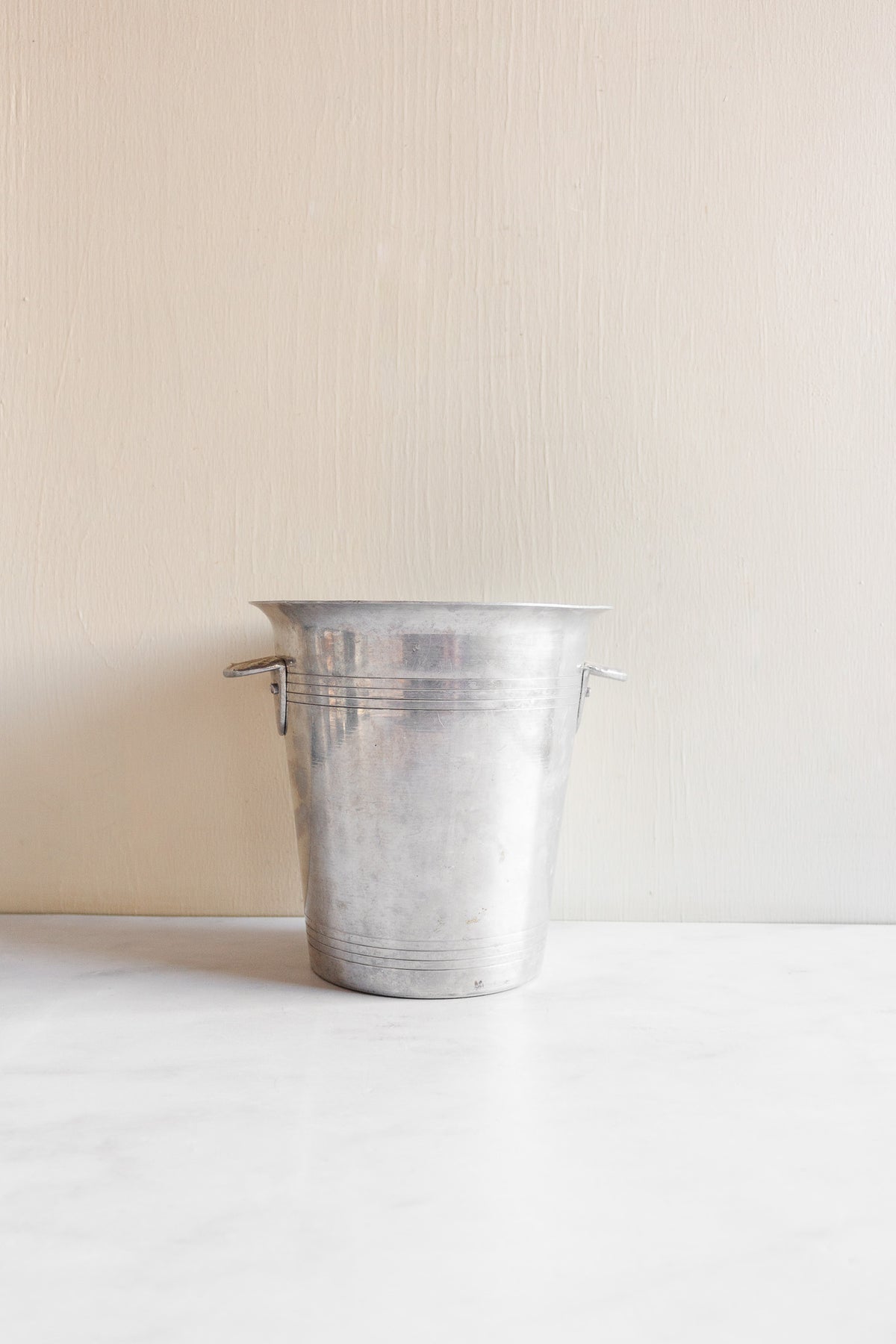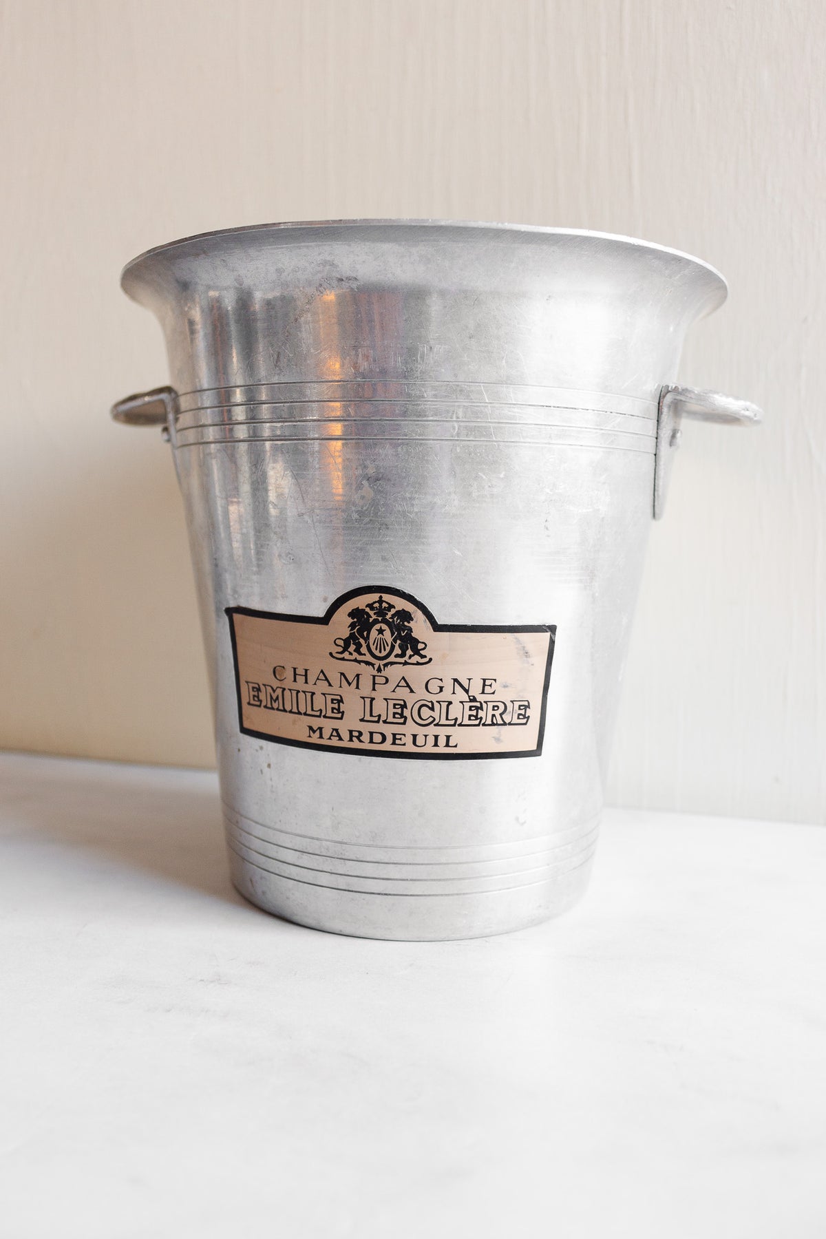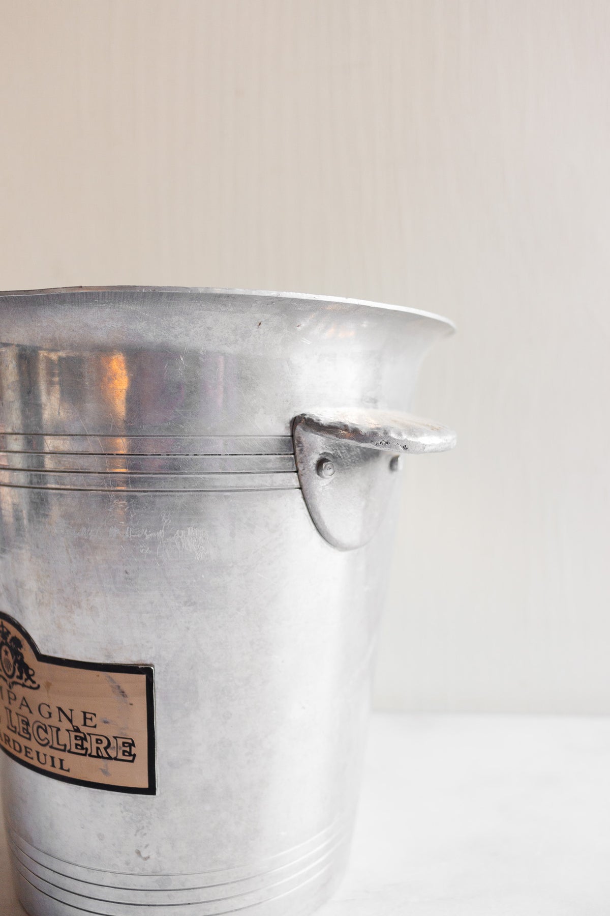 This vintage French aluminum champagne bucket is marked with the vintner's name Emile Leclère. We think these buckets are perfect not only for chilling drinks but also for a bouquet of fresh flowers. In good vintage condition, with signs of wear, age and use. Sourced from a brocante in Marseille.