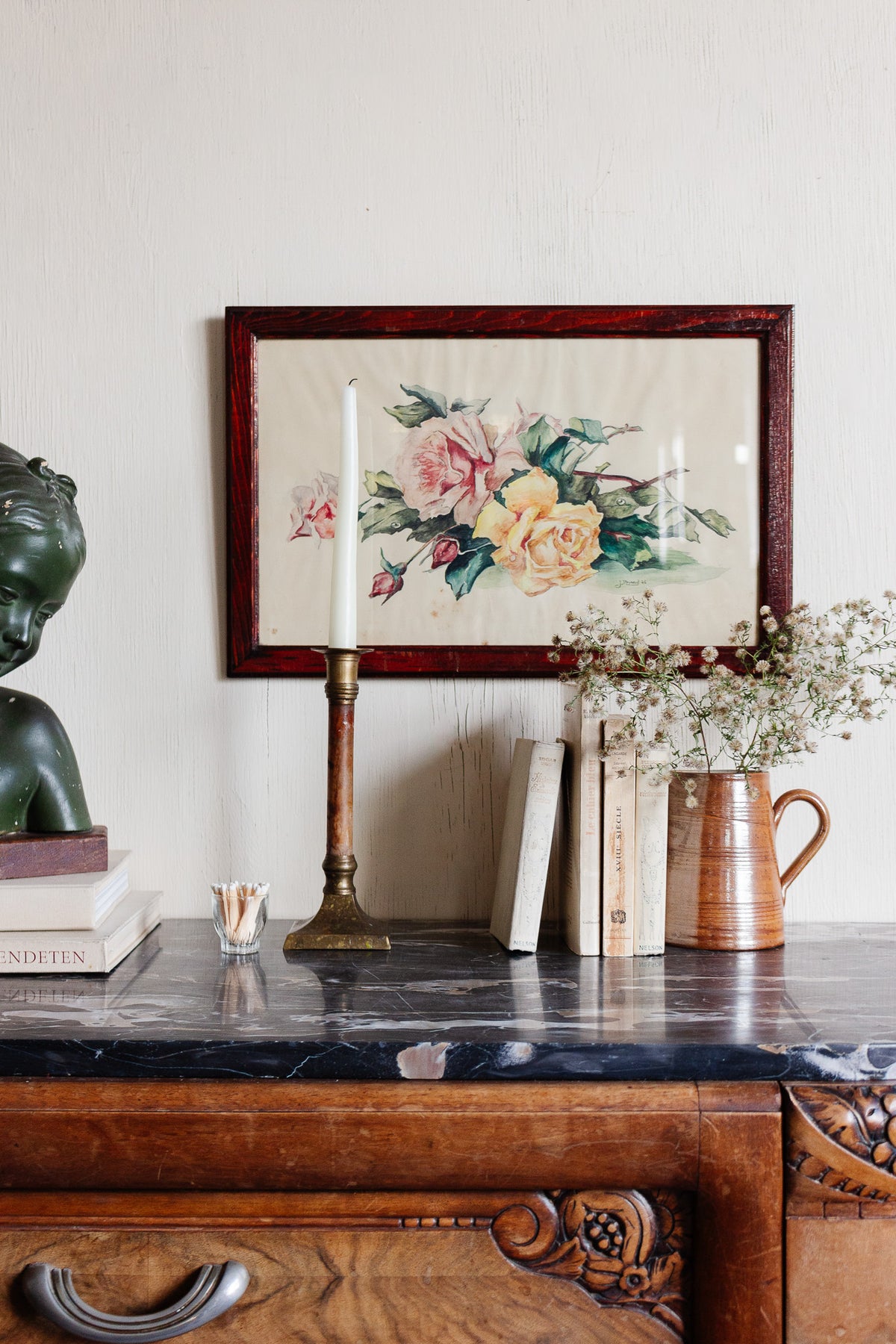 A beautiful 1940s watercolour of delicate flowers that once hung on the walls of a home in Marseille, now ready for a new life. This piece has been signed and dated by the artist.