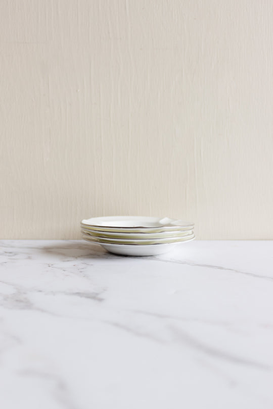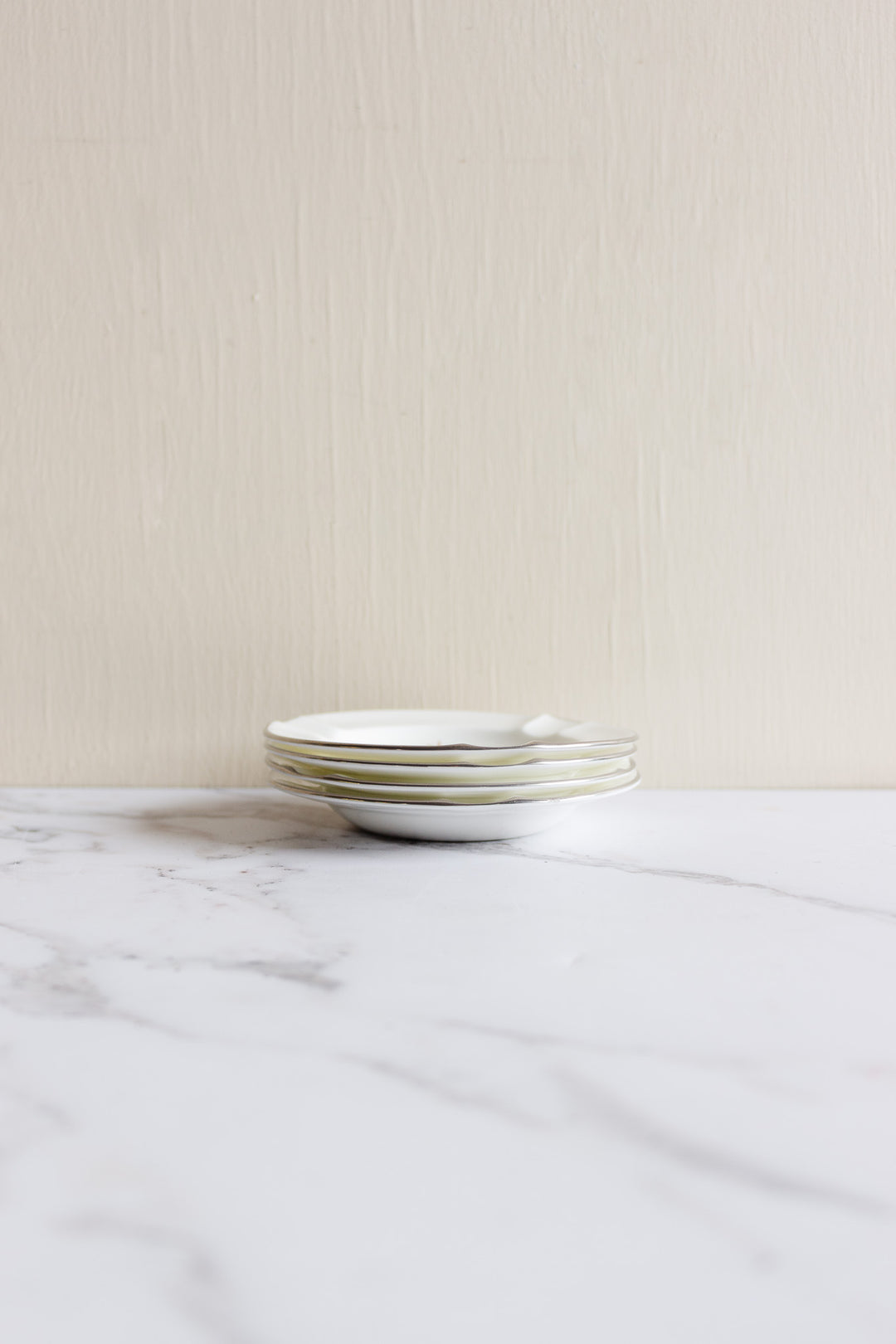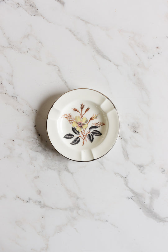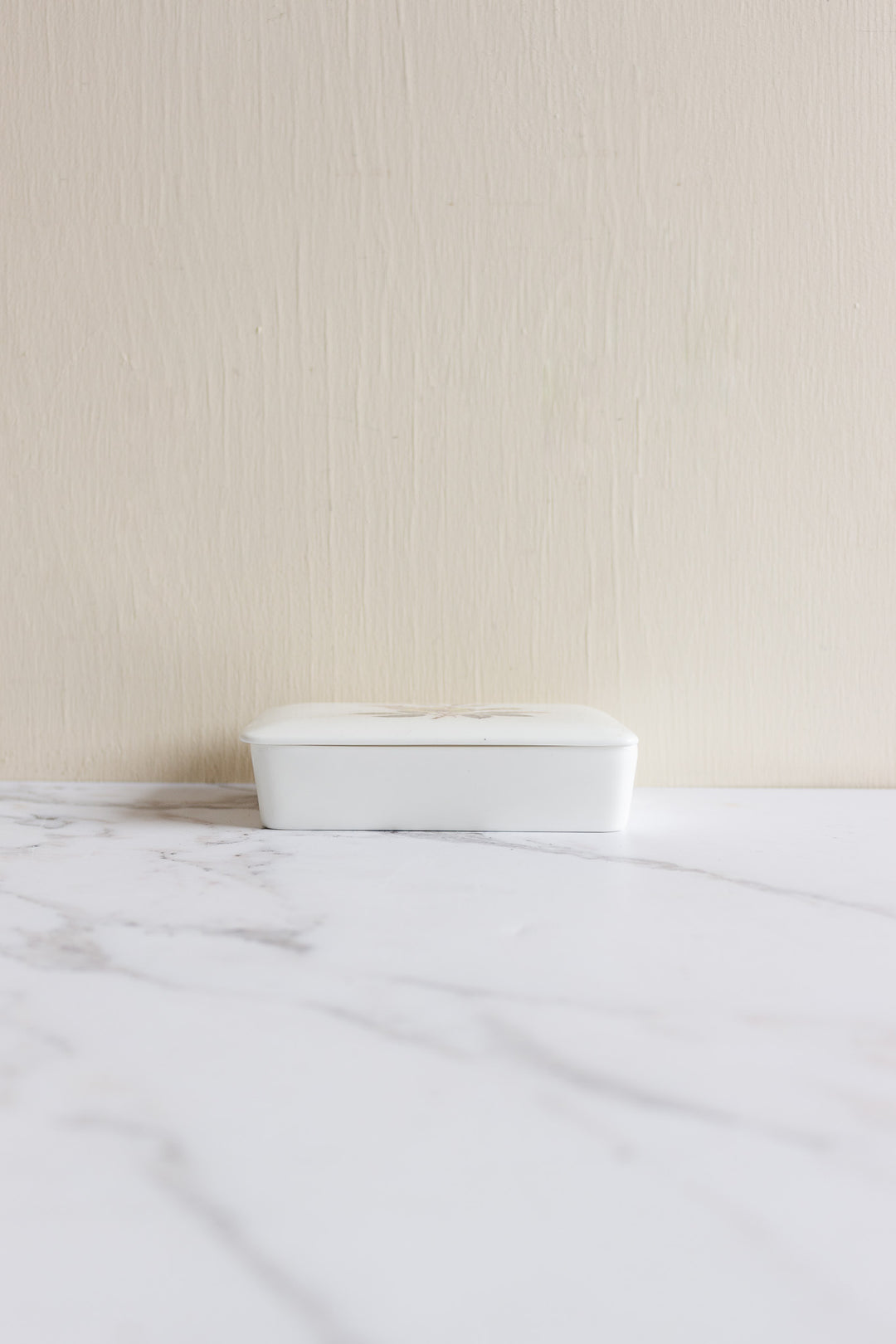 We found this vintage cigarette set at a brocante in Marseille.  It includes one porcelain cigarette box and 4 matching ashtrays.