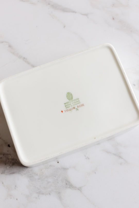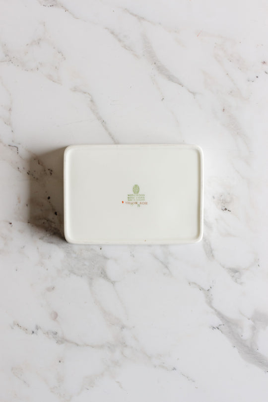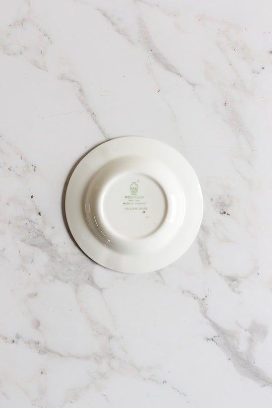 The Yellow Rose pattern by Wedgwood is a charming design featuring delicate yellow roses with brown and green leaves, but it has no trim. This pattern is part of Wedgwood's classic collection and is now discontinued.