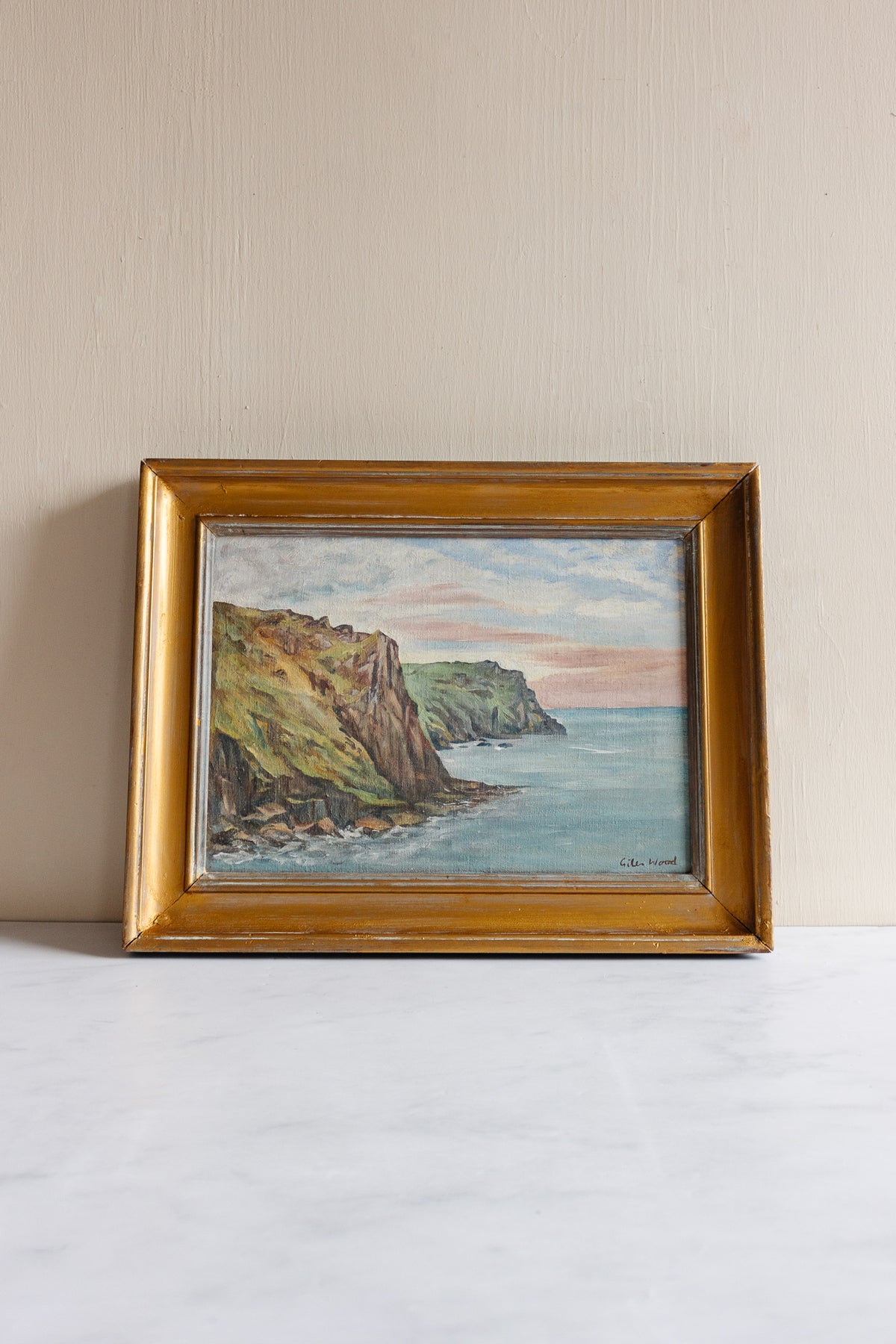 Vintage French oil on canvas; framed in original wood frame as shown.