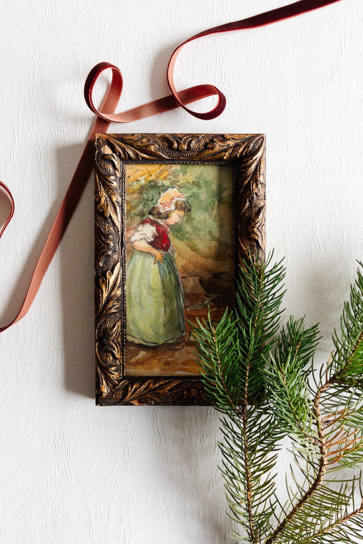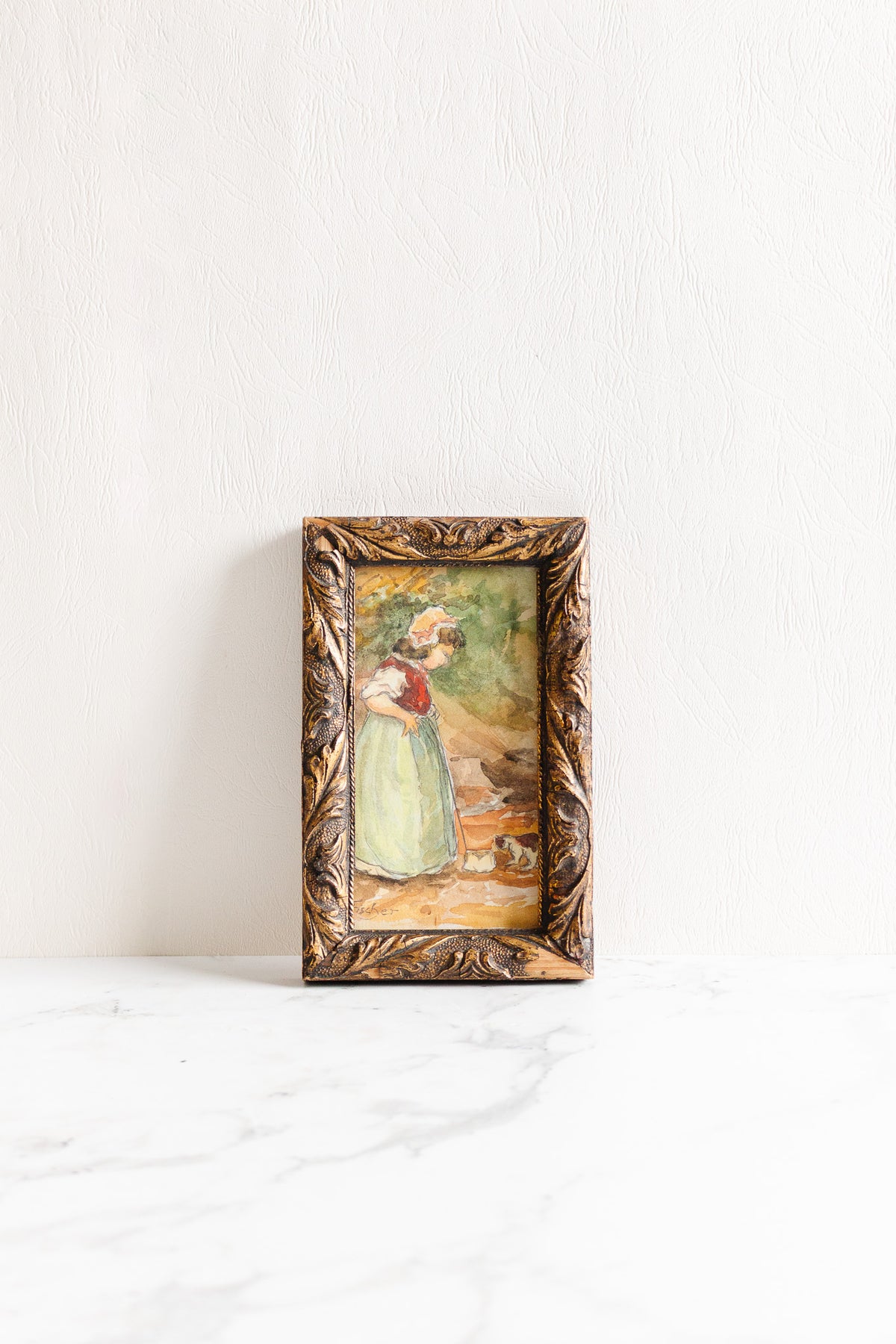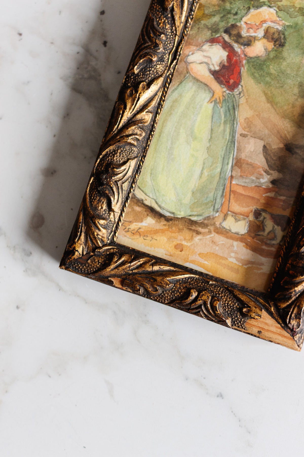 An original watercolour on paper housed in a beautiful wood-and-plaster frame, sourced from a brocante in Marseille. The colours are soft and inviting, and the petite size makes it an easy piece to style anywhere. The frame shows a bit of chipping, the kind that adds exactly the sort of charm we never want to fix.