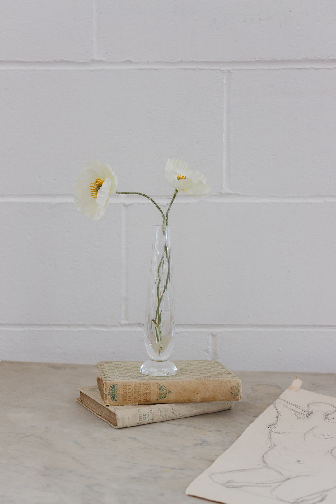 There is something so chic and elegant about a tall, slender crystal vase. This beautifully crafted Waterford crystal vase looks so stunning with a few long stems, and it’s cut glass details are subtle and timeless. Sourced from a brocante in Marseille.