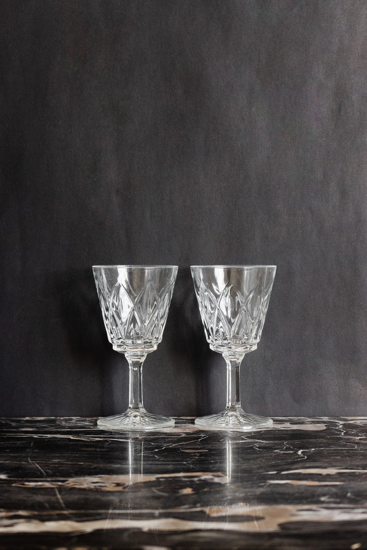 Beautifully designed and timeless french glassware sourced from a brocante in Marseille. Sold as a pair.