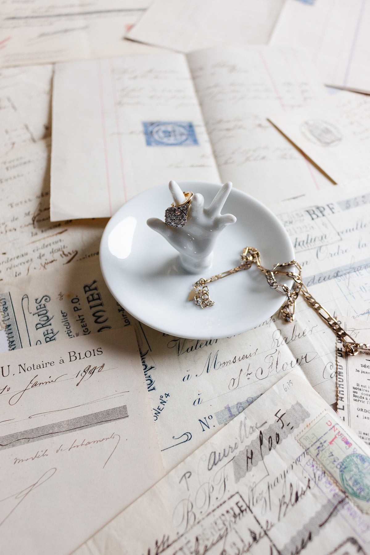 This sweet ring tray by Limoges features a classic design, but what caught our eye was the clean simplicity of the finish—which is extremely rare to find.