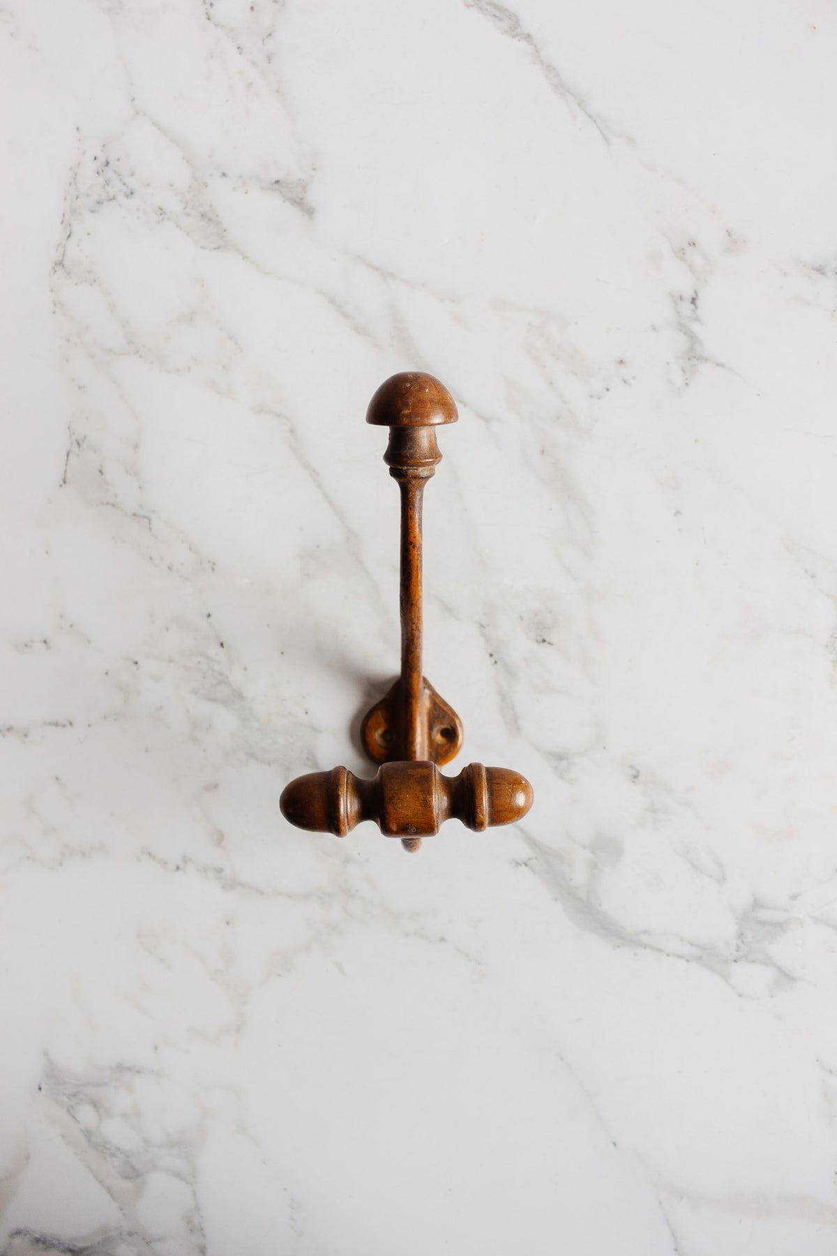 A charming French farmhouse hat hook combining a turned wood peg with a curved metal arm. Once used in a rural home to hold daily hats and coats, it now brings a warm, rustic touch to any entryway, bathroom, or kitchen. A simple, practical piece with classic French utility. Sourced from a brocante in Marseille.