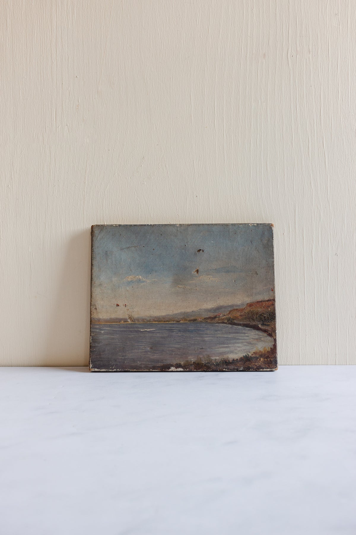 A beautifully weathered and worn antique French oil on canvas, of a stunning seascape scene. Unframed as shown.