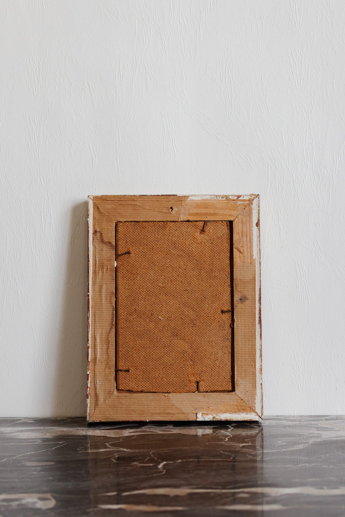 A magical antique oil on board sourced from an estate in Aix-en-Provence. The piece has an ethereal feel, along with charm and character from a lifetime of adornment. Some chips to the artwork as shown, wear to the frame.