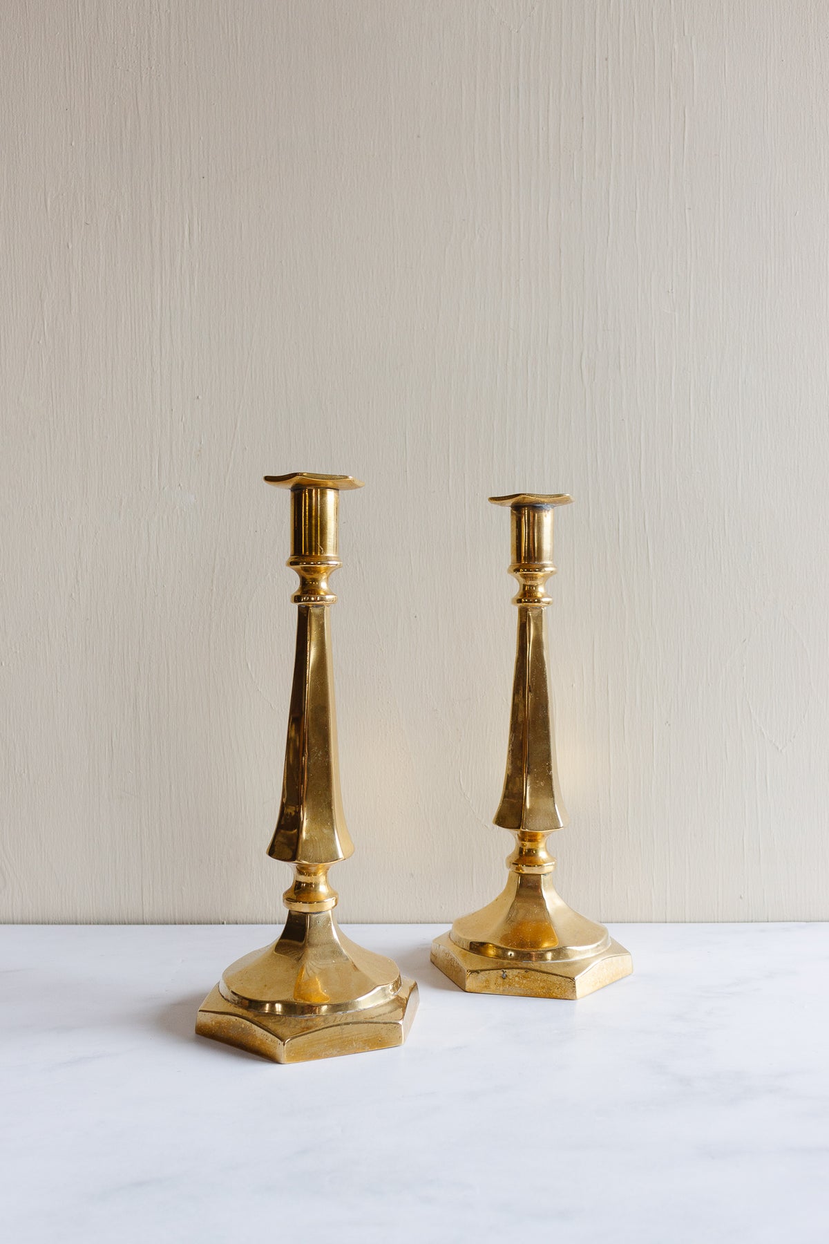 We love having an eclectic mix of vintage brass candlesticks on hand, and add instant warmth and charm to any space.