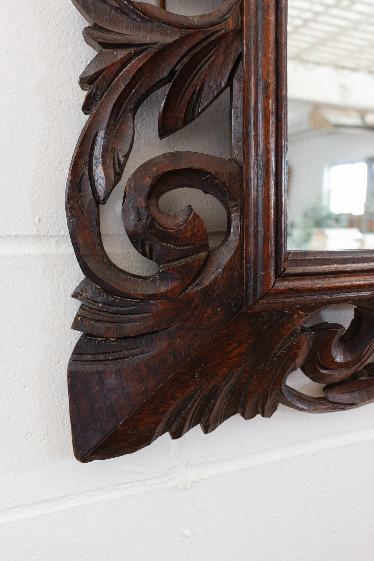 An incredibly impressive hand carved oak mirror, in classic Louis XIV ornate style. Sourced from a charming estate in Le Havre, where it used to hang over the fireplace mantle.