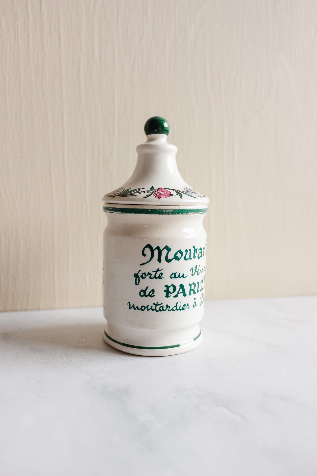 vintage french "moutarde de parizot" lidded mustard pot with spoon