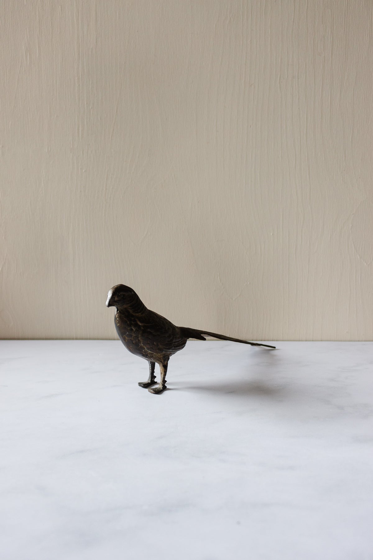 A heavy cast metal statue of a bird sourced from a brocante in Marseille.