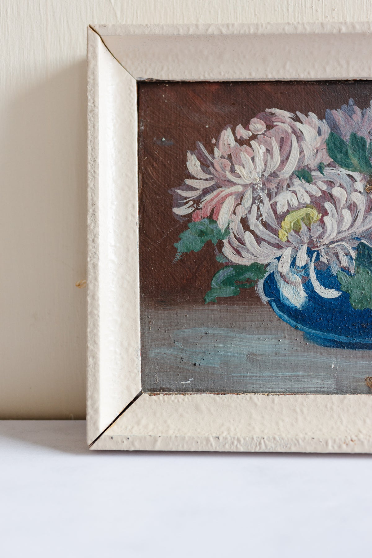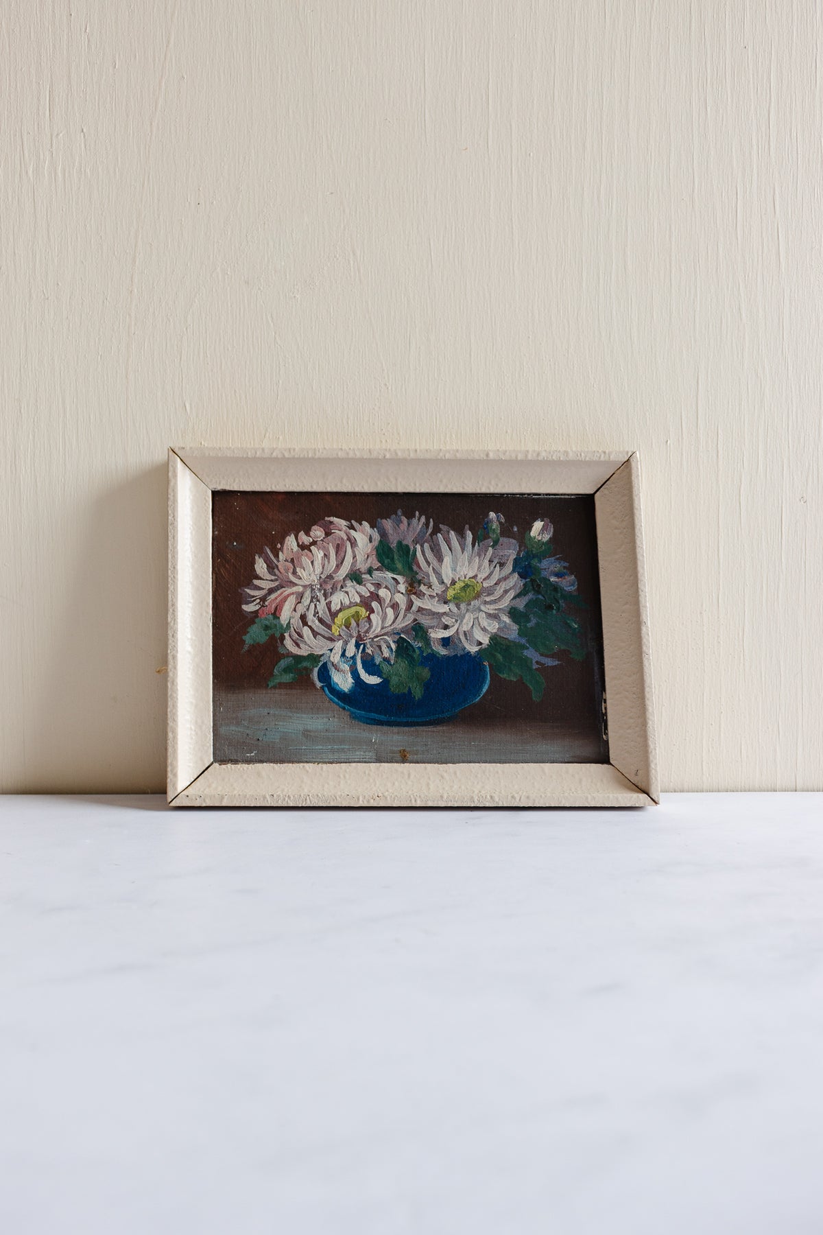 A pretty vintage French oil on board in a sweet white frame. This piece is unsigned and was sourced from a brocante in Aix-en-Provence.