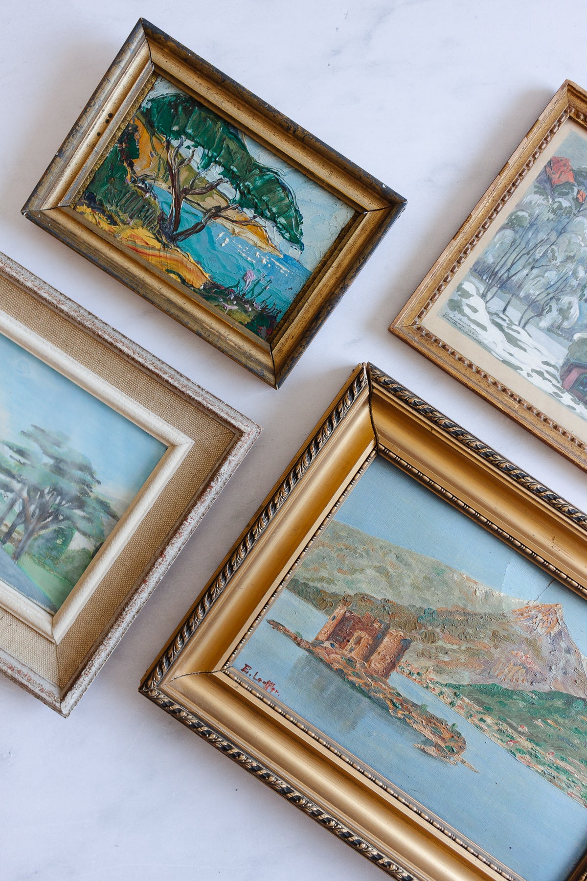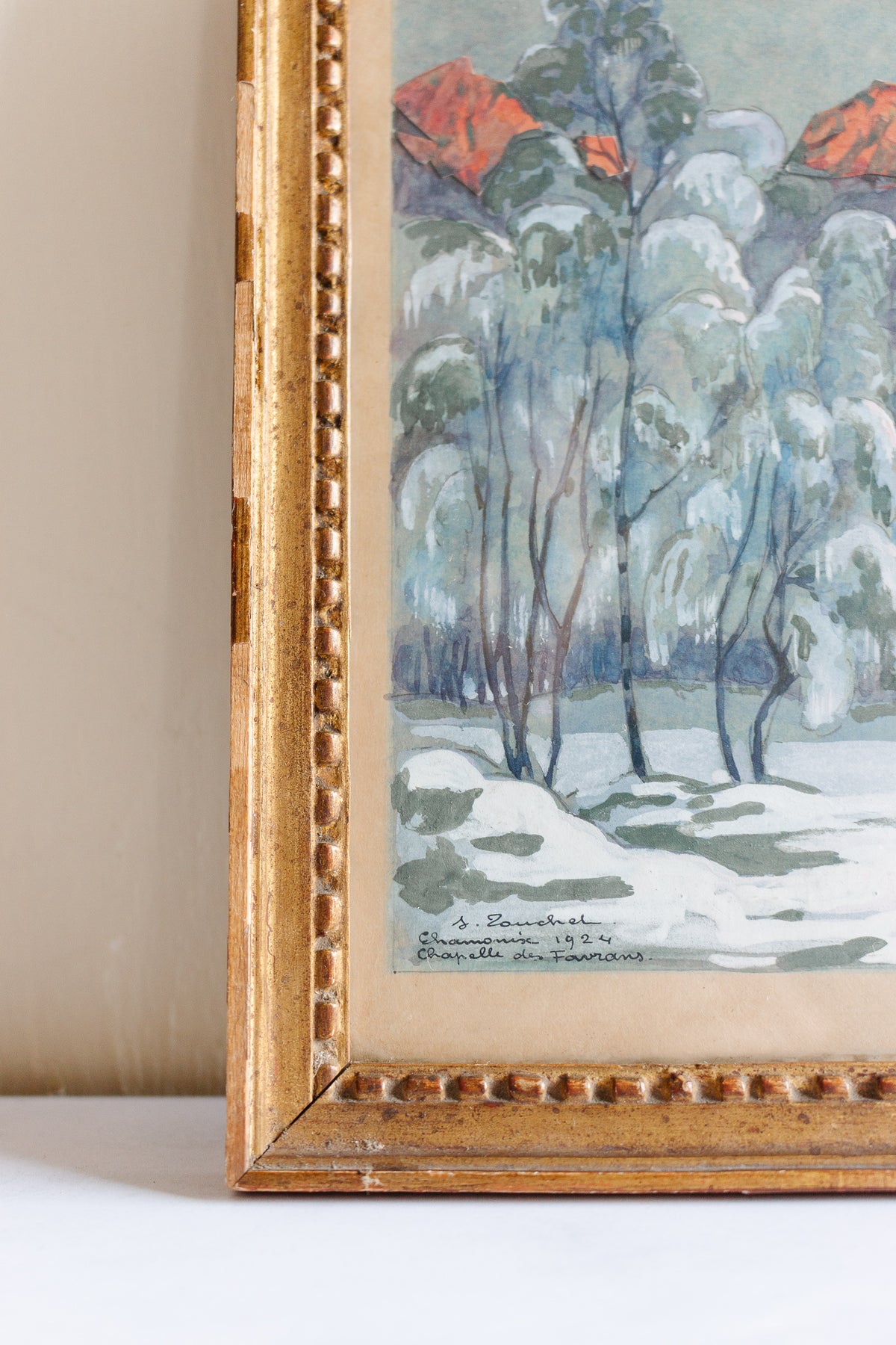 This nearly antique artwork dated 1924 and signed by the artist is a watercolour on paper in its original gilt frame. We love incorporating different sized pieces of art into our decor and creating gallery walls with pieces that tell a story. Sourced from a home in Le Havre.
