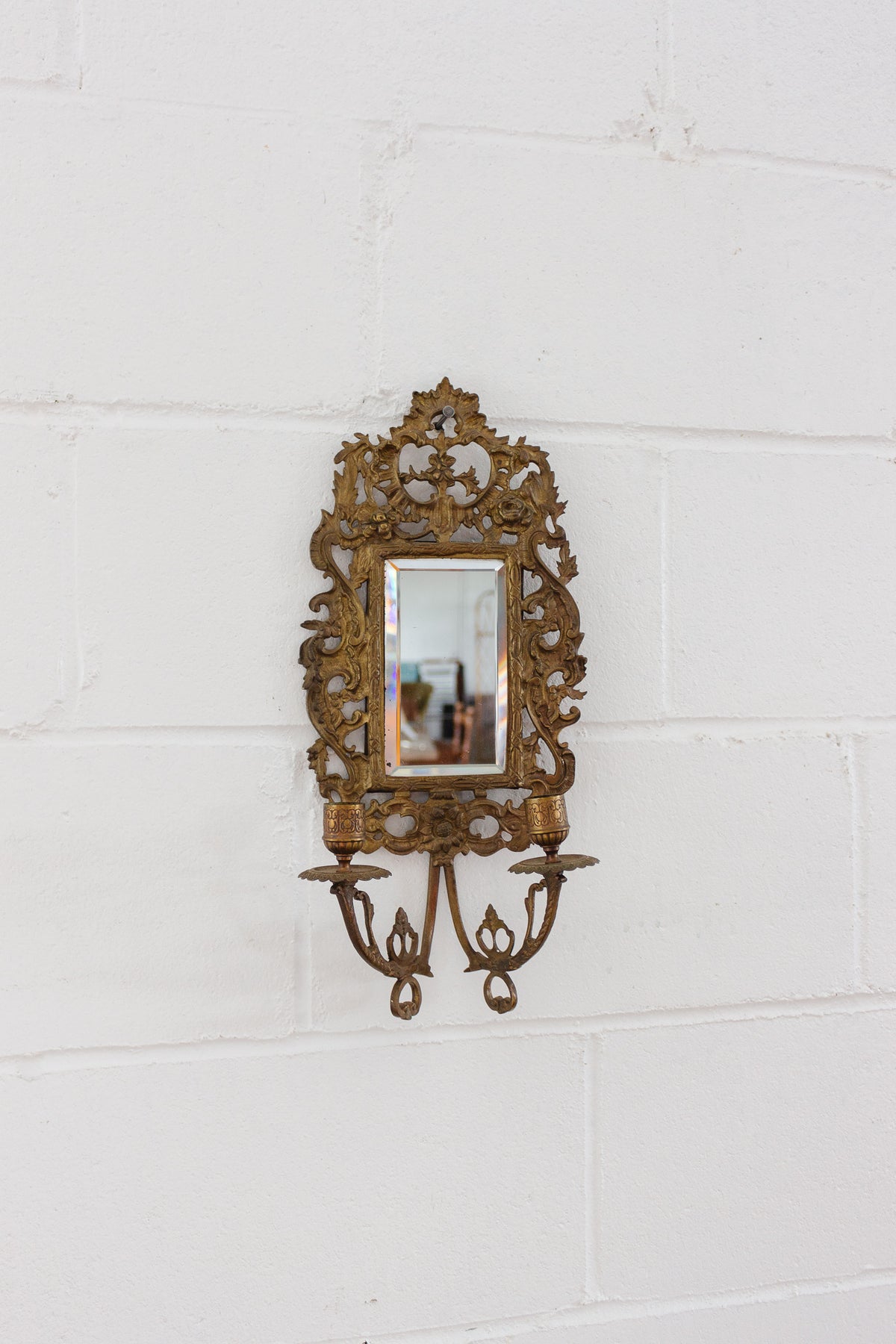 19th century french Napoleon III cast brass & beveled mirror sconce