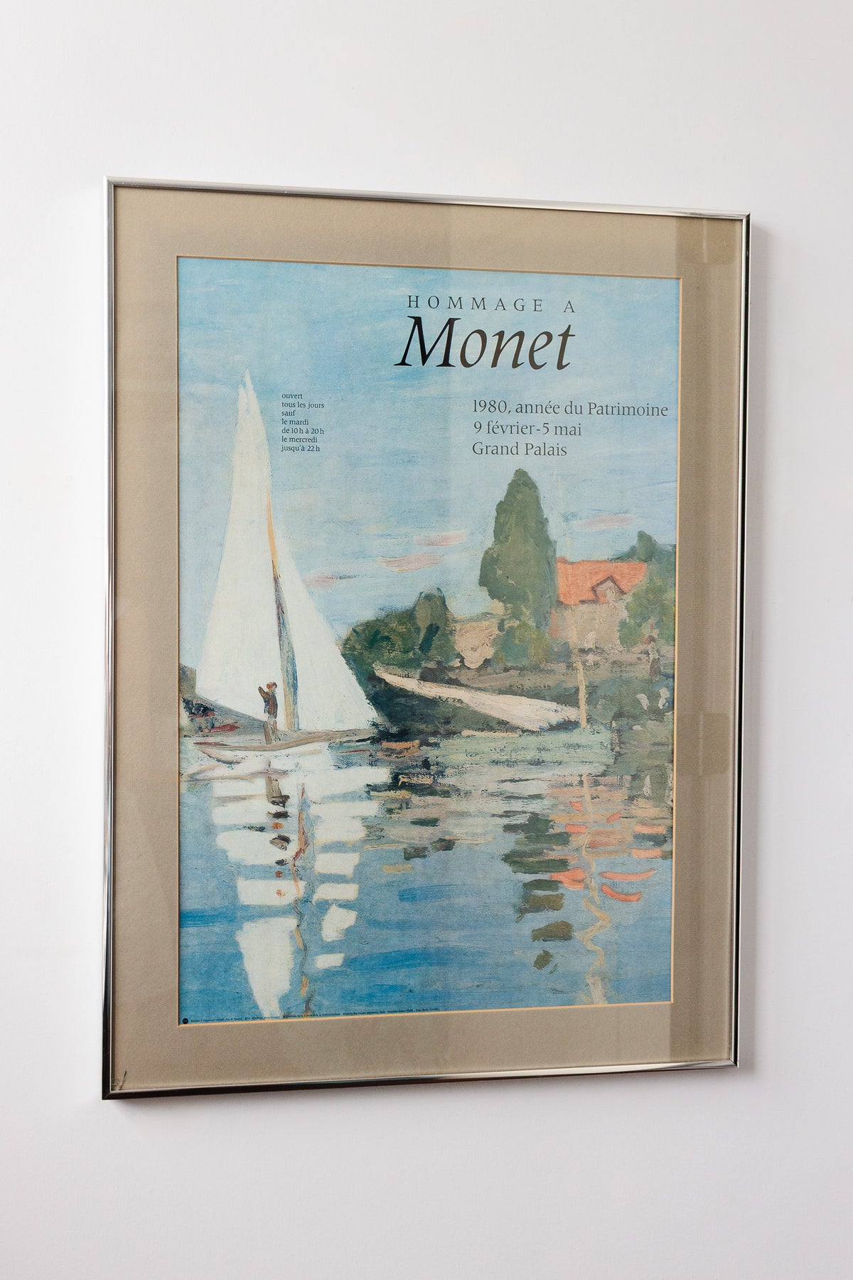 Original 1980 exhibition poster published by SPADEM for the “Hommage à Monet” tribute at the Grand Palais in Paris. Features a reproduction of one of Monet’s iconic works, printed in rich, high-quality tones. Authorized by SPADEM (Société de la Propriété Artistique et des Dessins et Modèles), the official rights holder for Monet’s estate. A collectible piece of art history celebrating the legacy of French Impressionism. Printed in France.