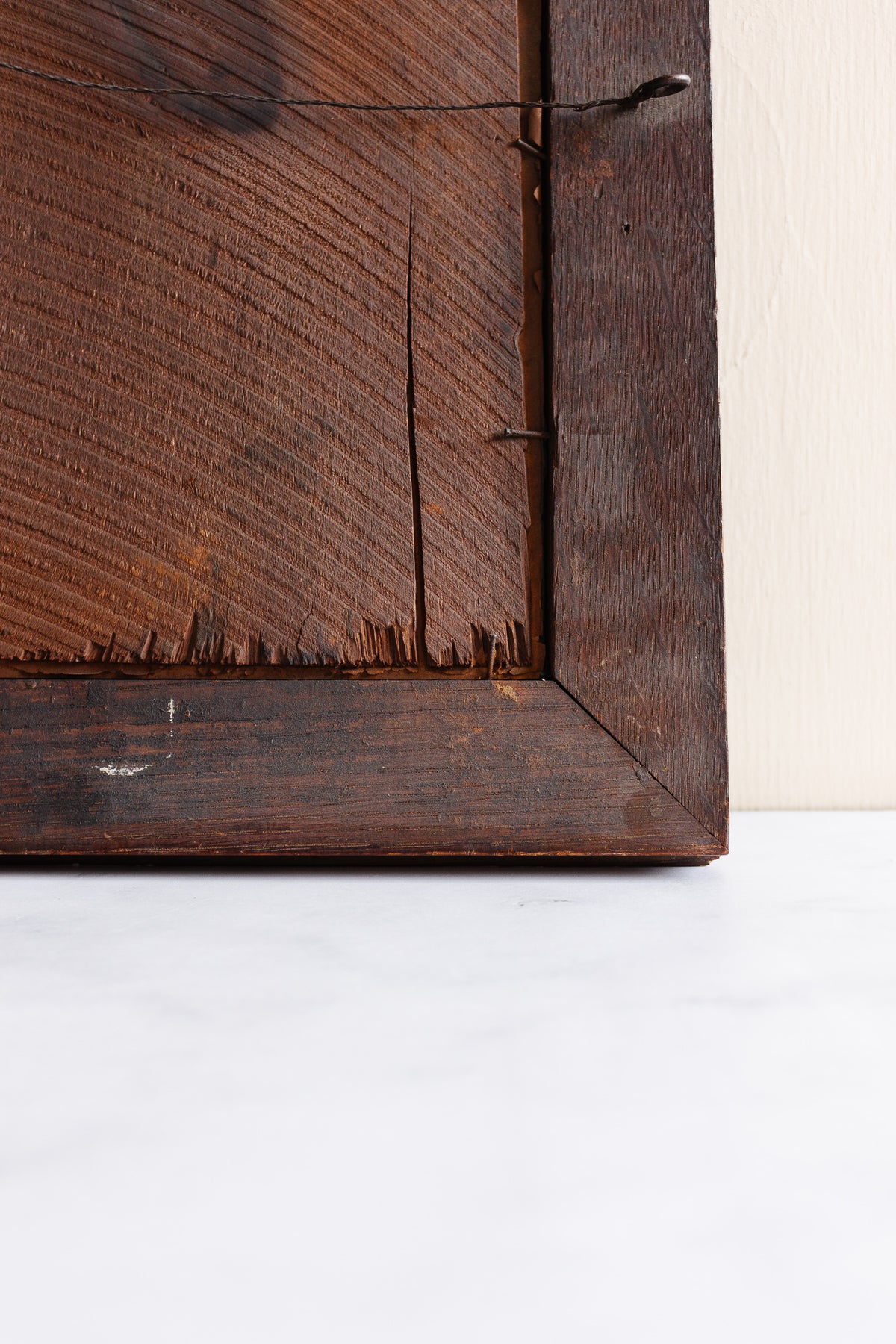 This exquisite antique print looks like an original piece of art. We love majestic nautical artwork which works with all styles of decor. This piece is unsigned and in the original wood frame. The back has been made with antique wood planks. Sourced from a brocante in Aix-en-Provence.