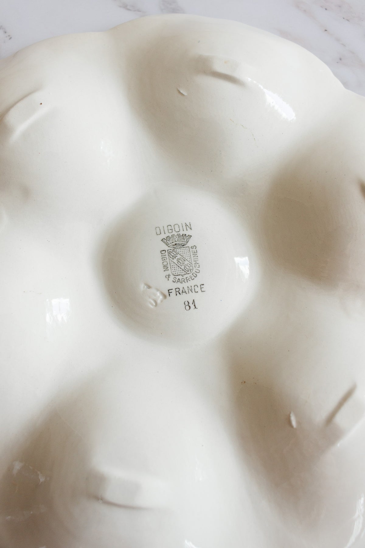 We were lucky enough to find a petite set of these ironstone oyster plates from famed French manufacturer Sarreguemines in a delightful and rare colour way.