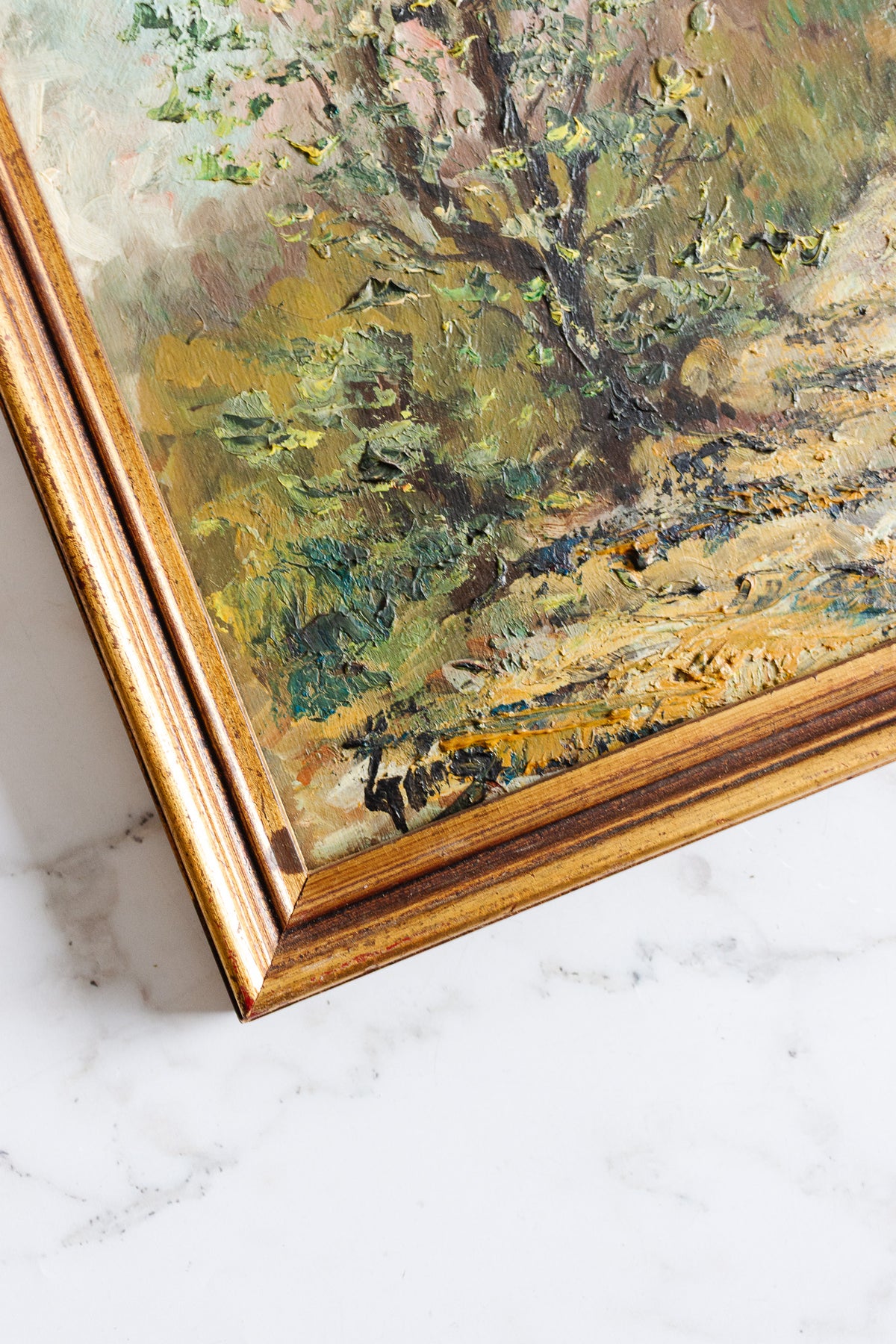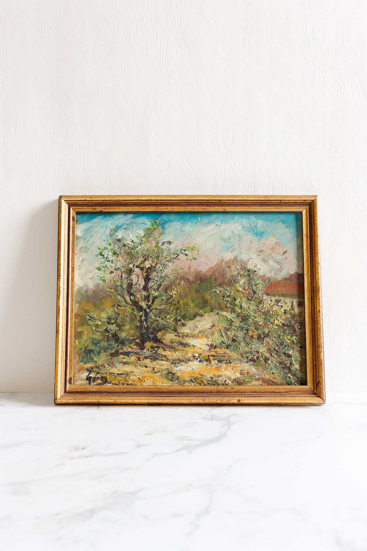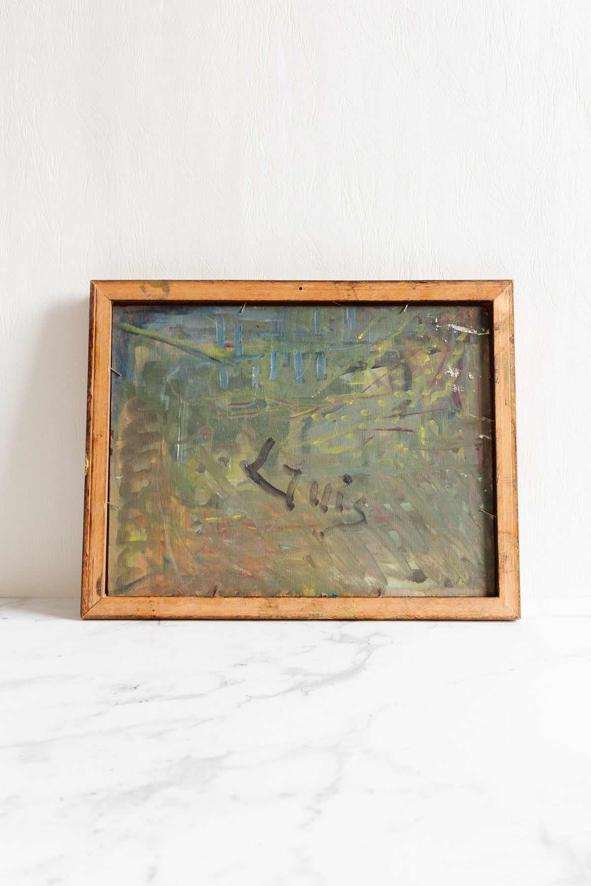 Sourced from a brocante in Marseille, this expressive little painting is full of movement and layered brushwork, giving it a tactile surface. The artist’s signature, simply Luis, adds to its charm—an intimate, character-filled piece ready to warm a wall or complete a gallery arrangement.
