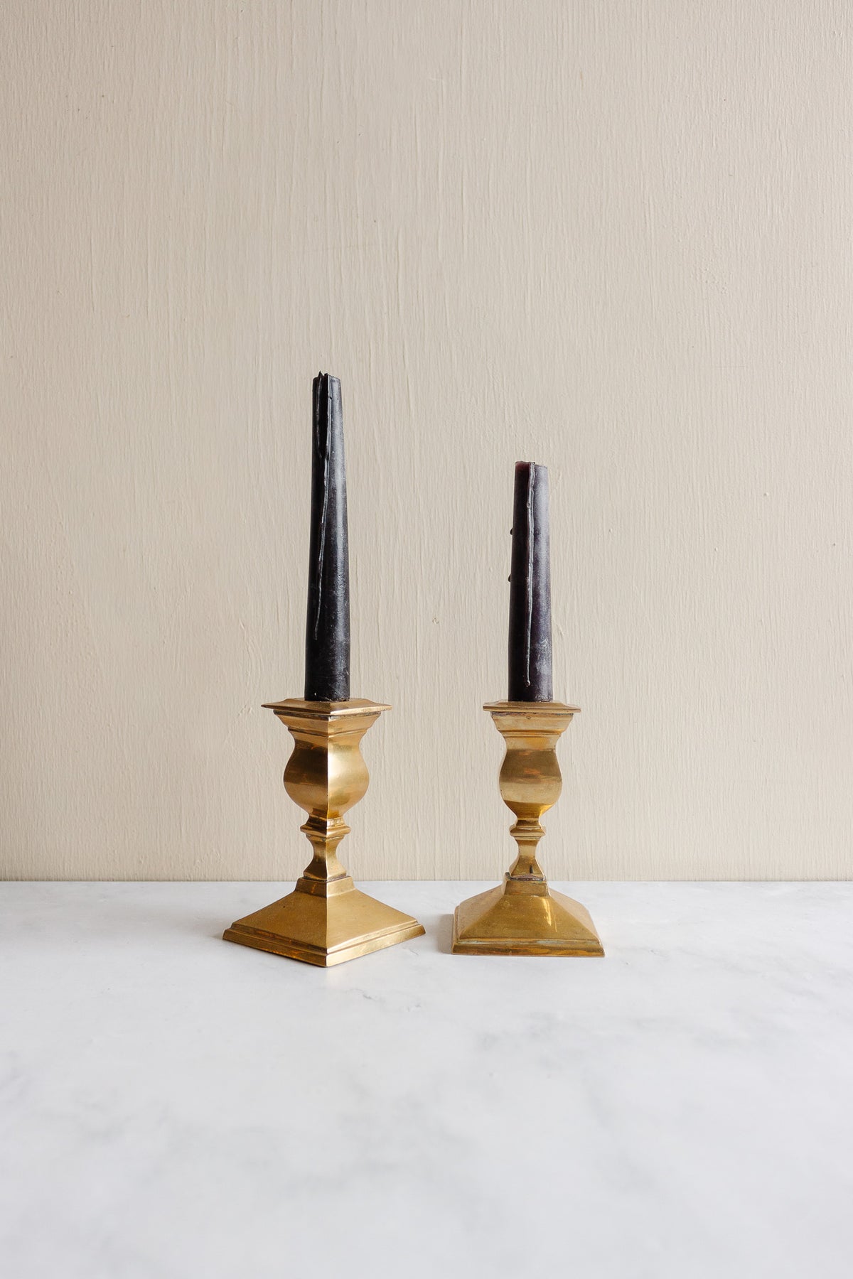 We love having an eclectic mix of vintage brass candlesticks on hand, and add instant warmth and charm to any space. This unique and shapely pair would be the perfect addition.