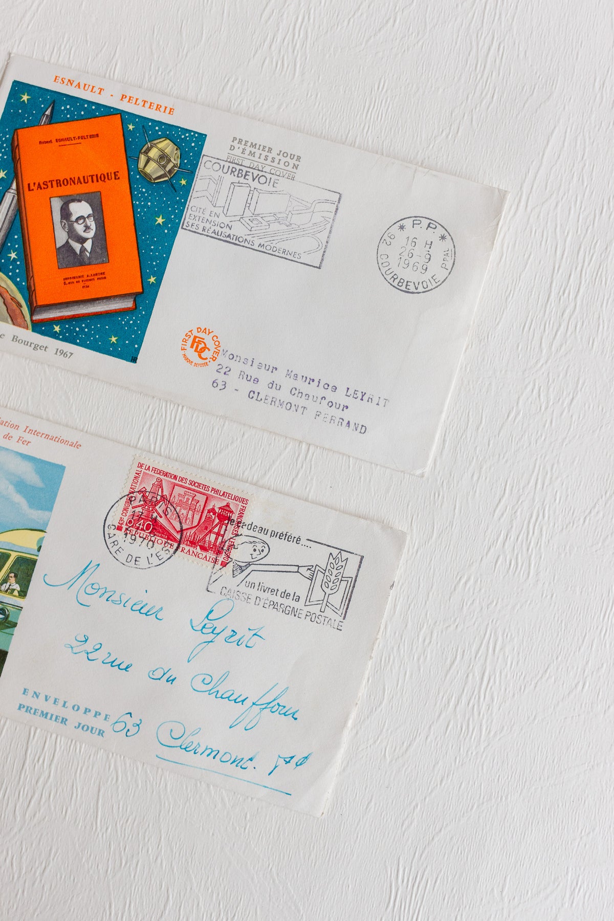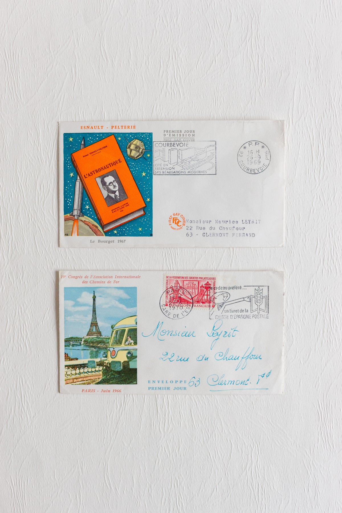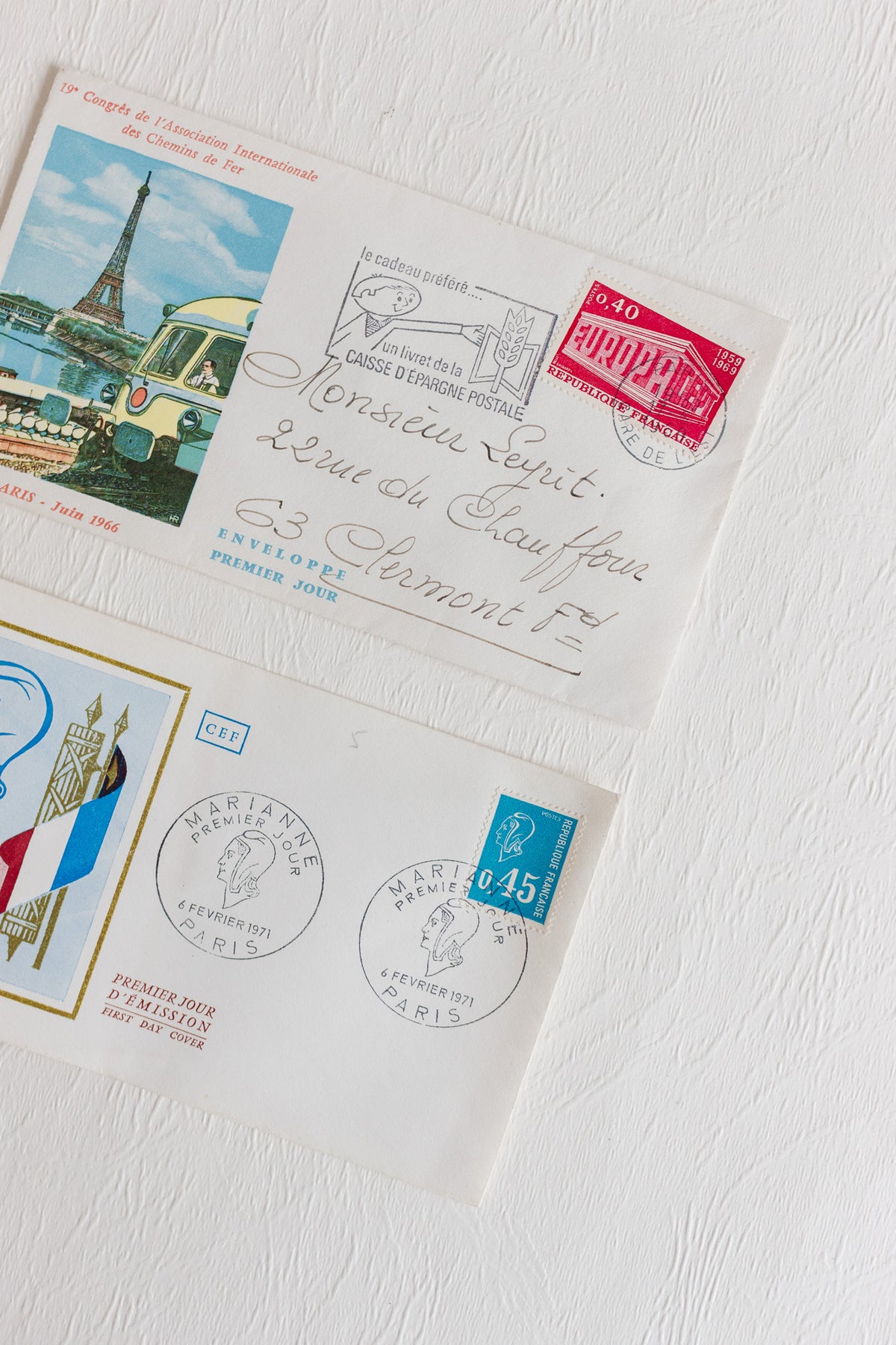 pair of vintage french mailed and stamped envelopes 1950s to 1970s