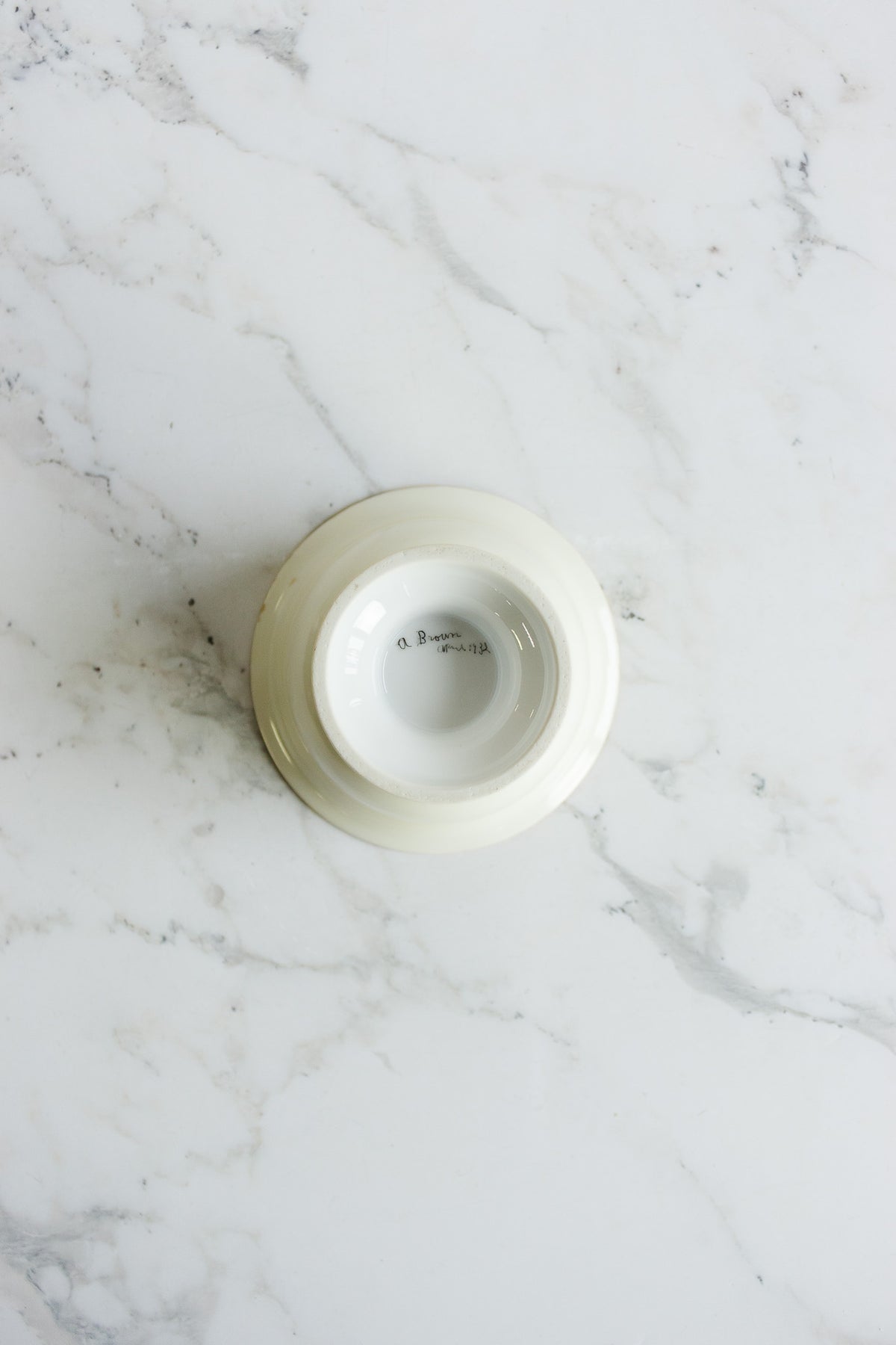 A hand-painted English pedestal dish dated 1932 and signed by the artist on the underside. The piece features a crisp white base accented with a delicate rim of painted flowers in soft pastel tones. Elevated on a slender footed base, it’s both graceful and practical — ideal for serving sweets or as a charming centerpiece.