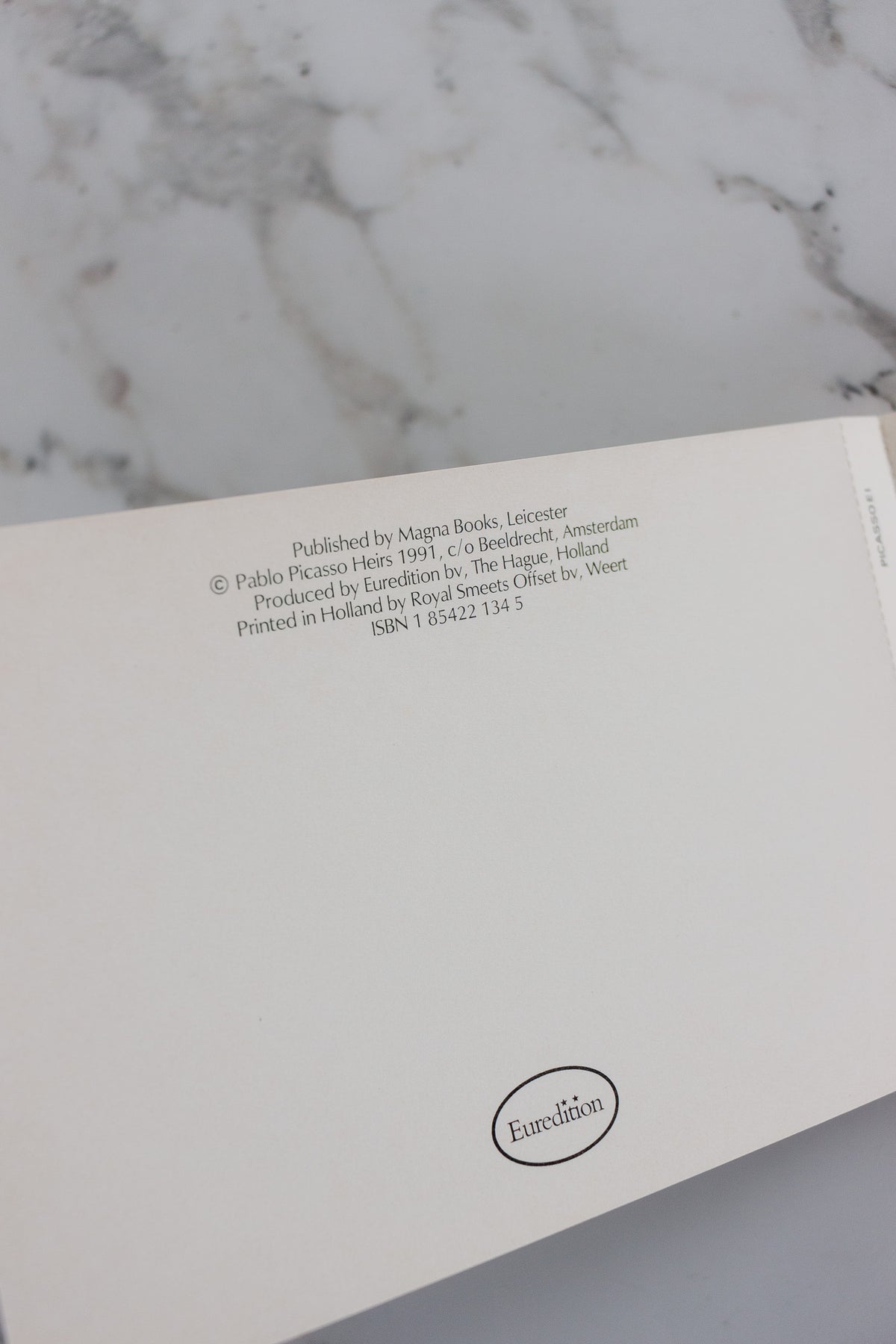 The "Pablo Picasso: Book of 30 Postcards", published by Magna Books in 1991, features 30 detachable postcards of Picasso's artworks. Printed in Holland by Royal Smeets Offset, 1991. Sourced from a brocante in Marseille.