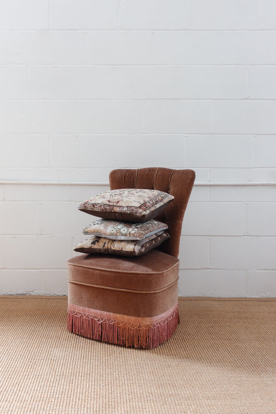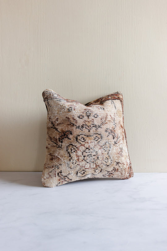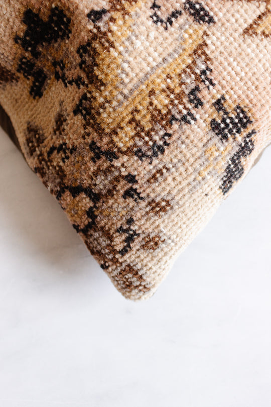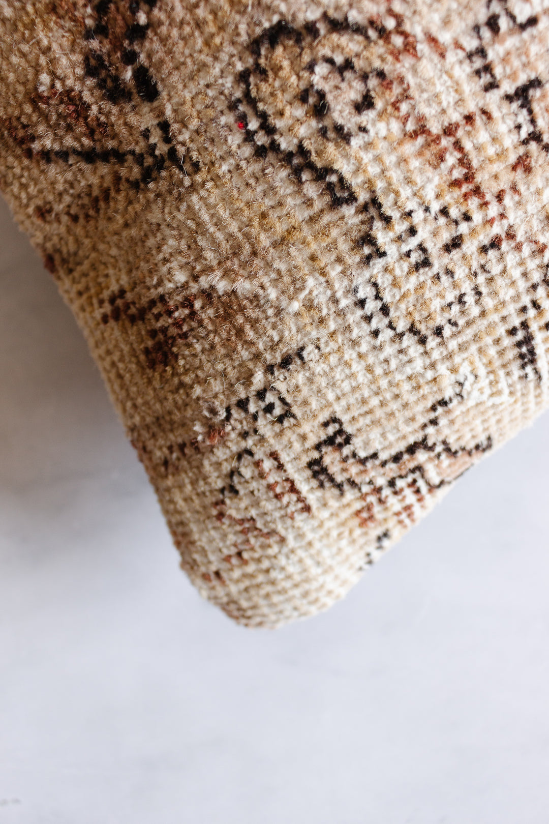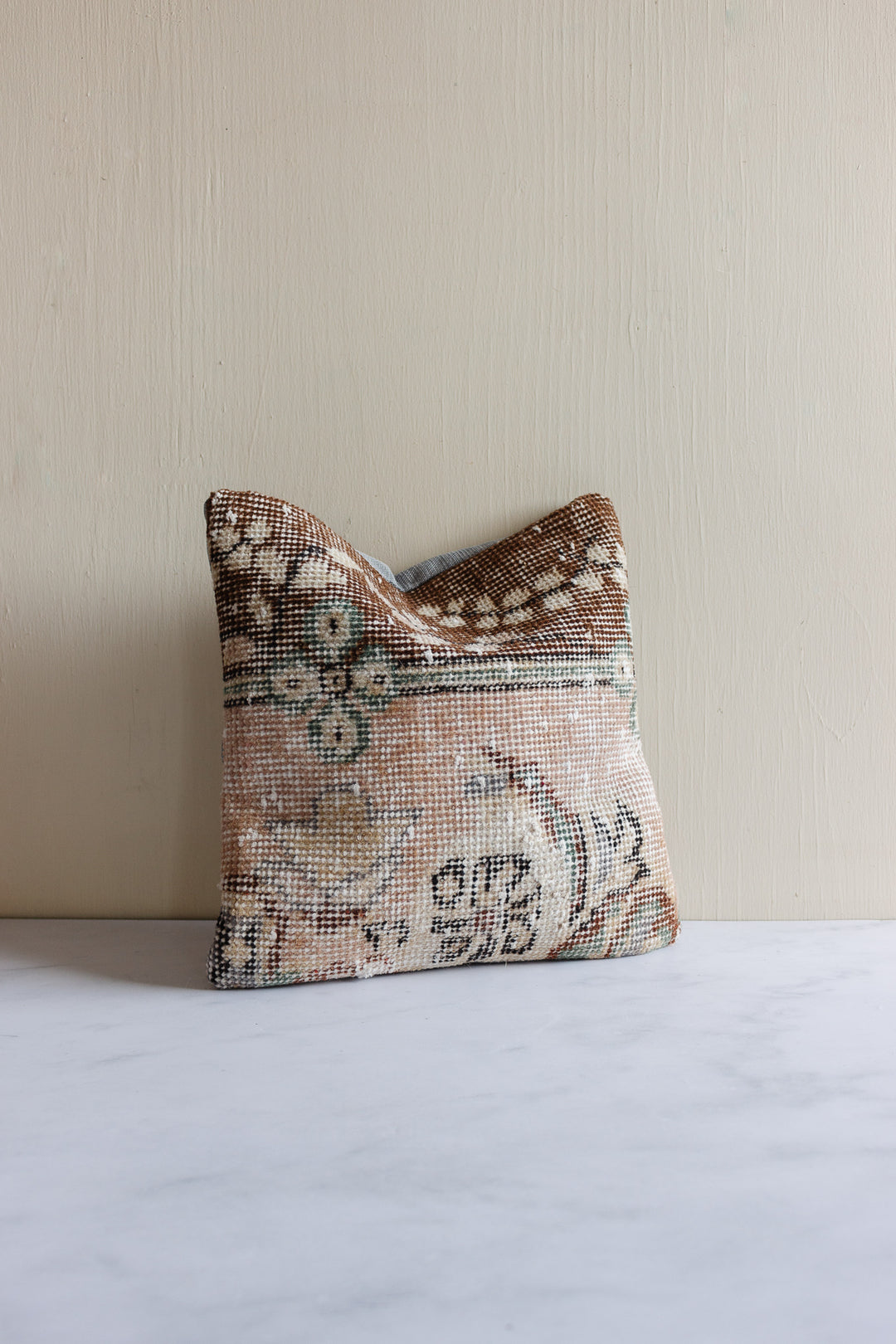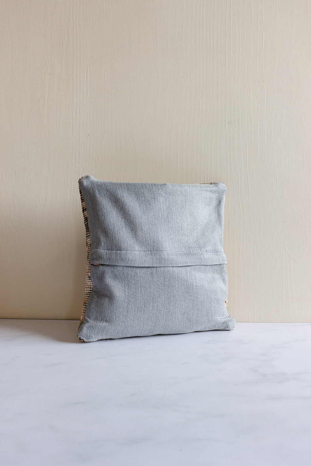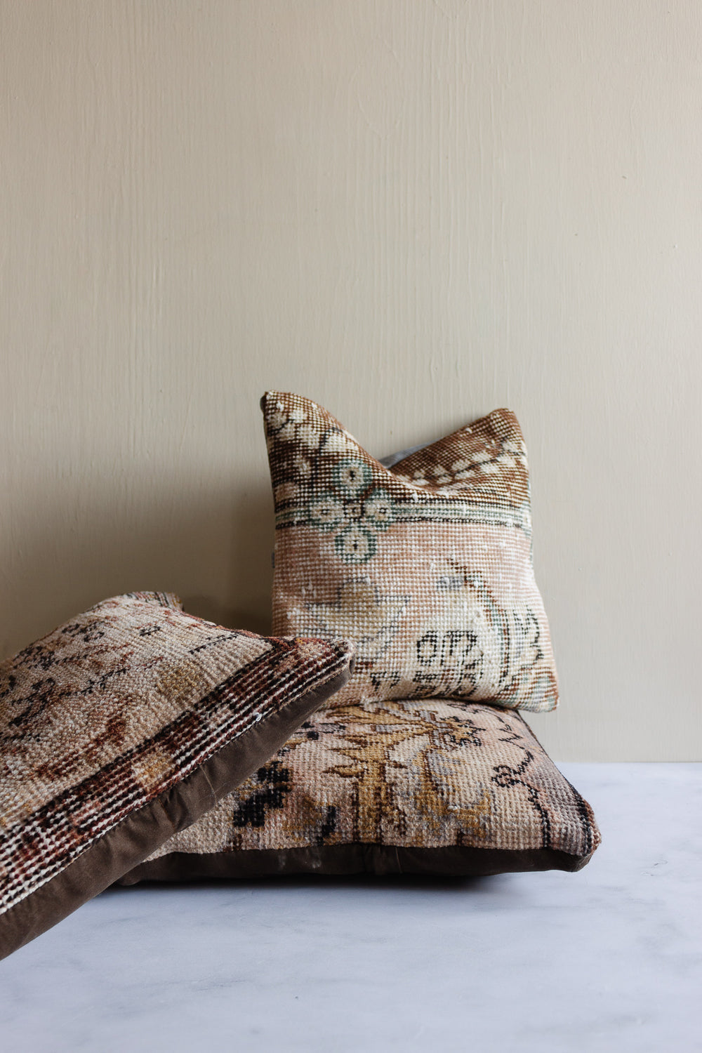These stunning pillow covers were crafted by hand by a rug collector in Turkey from antique and vintage Turkish kilim wool rugs. Each pillow cover is one of a kind, and they have the most gorgeous muted tones and stunning designs—perfect for elevating any space and adding variety and texture.  The reverse side is made of a cotton fabric with hidden zipper. All pillow covers have been professionally cleaned.