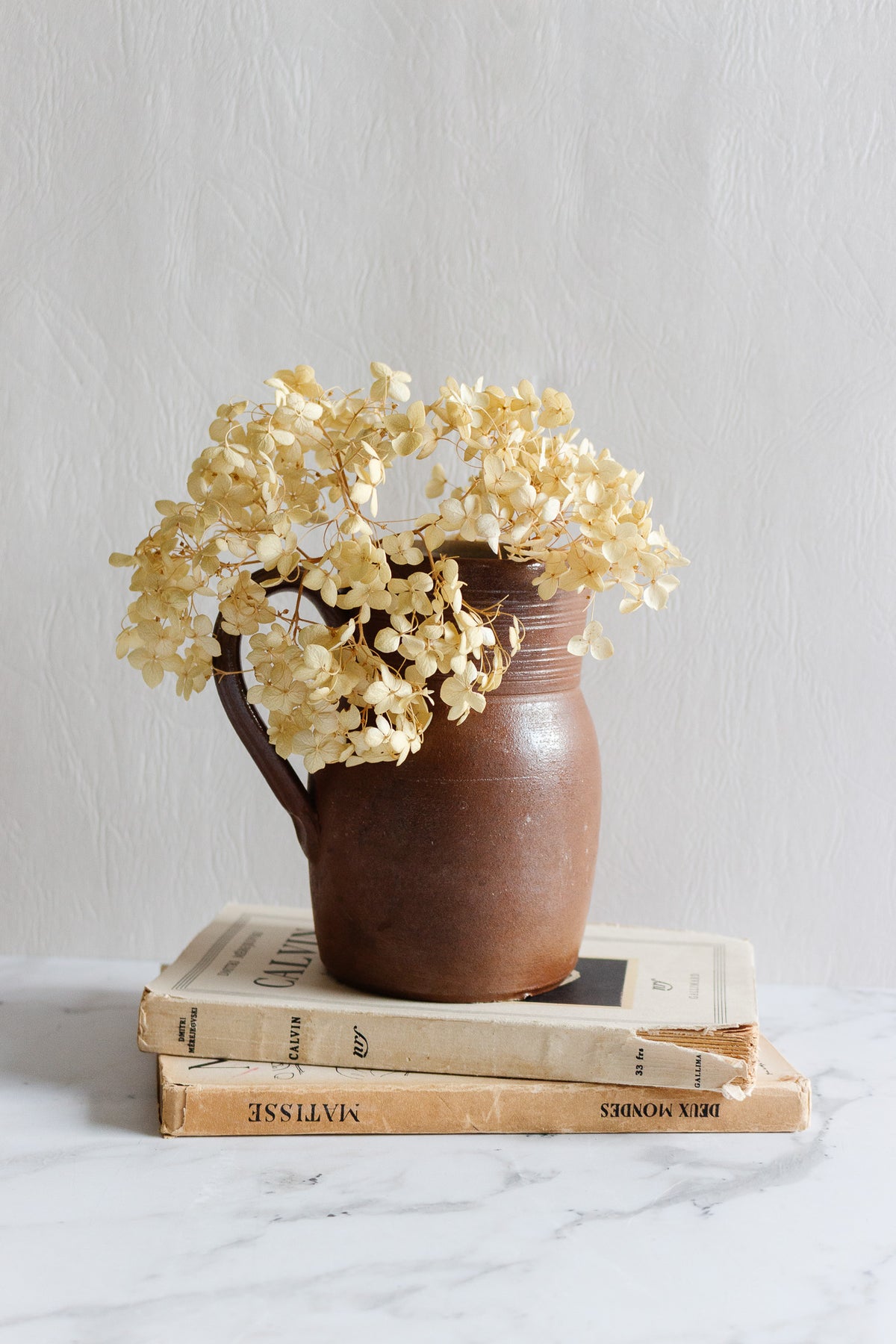 We love these gorgeous stoneware pitchers that are beautiful on their own on a shelf, or repurposed as a flower vase. This piece is marked as handmade by "grès du berry".