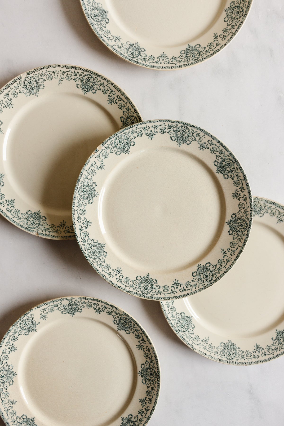 antique french transferware plates, set of 5