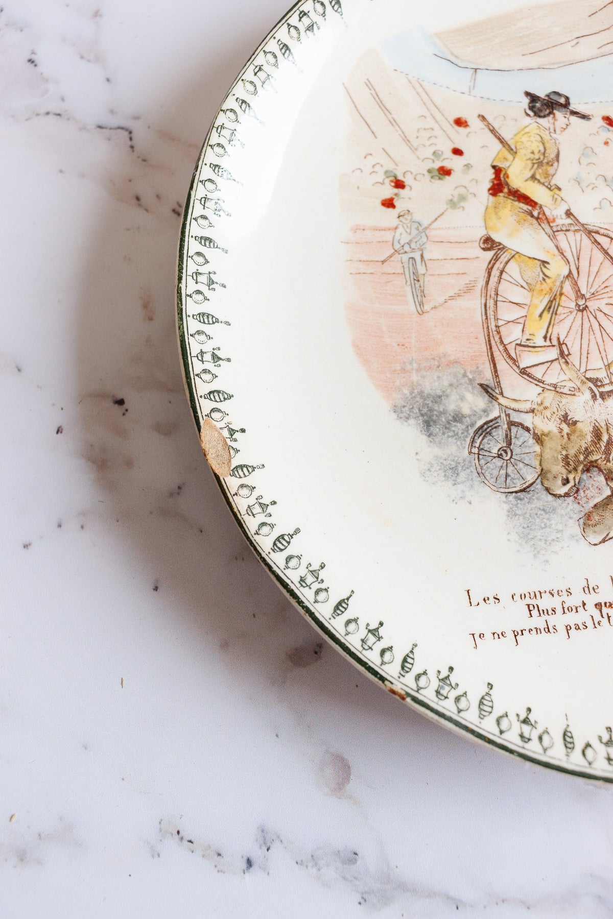 rare antique french choisy le roi hb & cie cycling talking plates