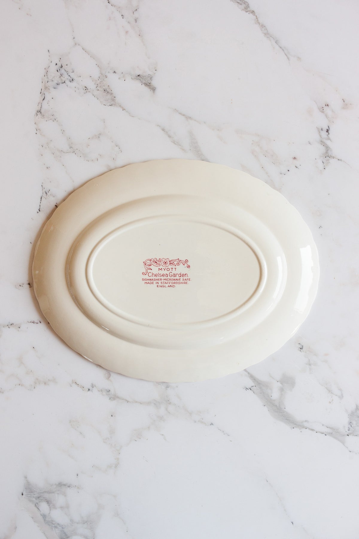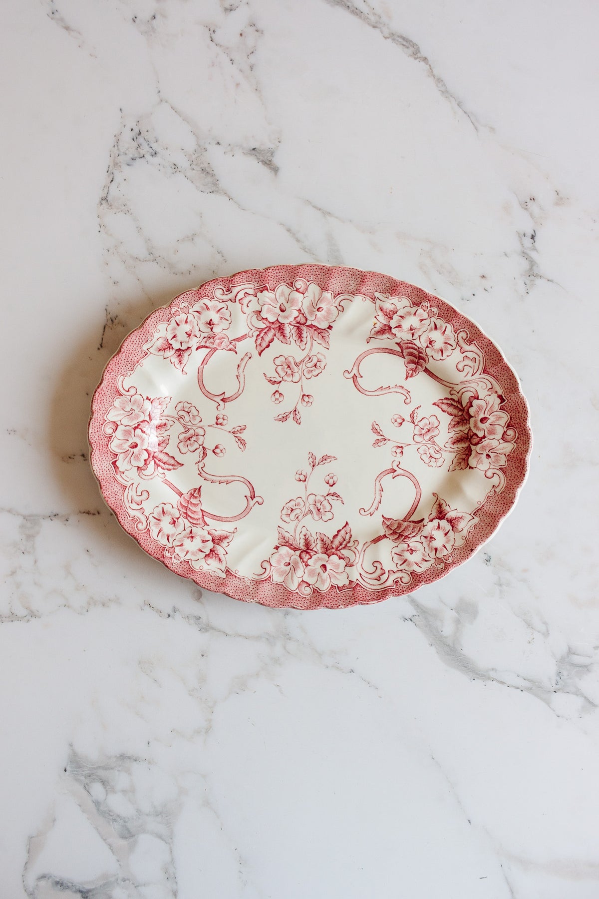 A stunning platter by Myott in their Chelsea Garden pattern. This pattern is usually in blue, but we found this less common red version at an estate in Marseille.