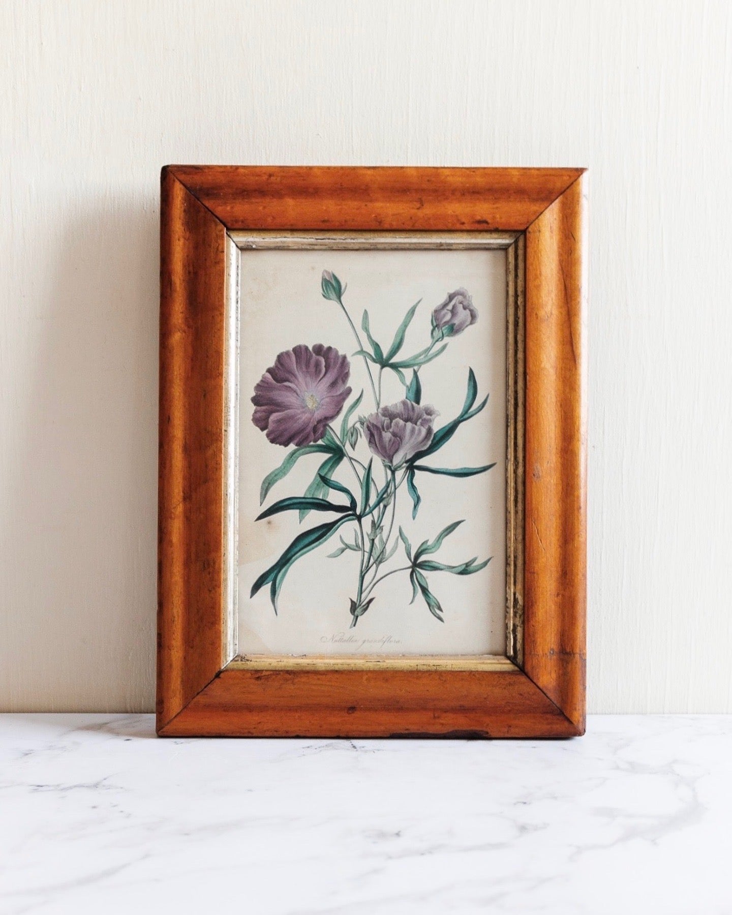 This sweet vintage french botanical plate is framed and ready to hang. The name "nuttallia grandiflora" is now out dated and Calochortus nuttallii would be the correct and current name.