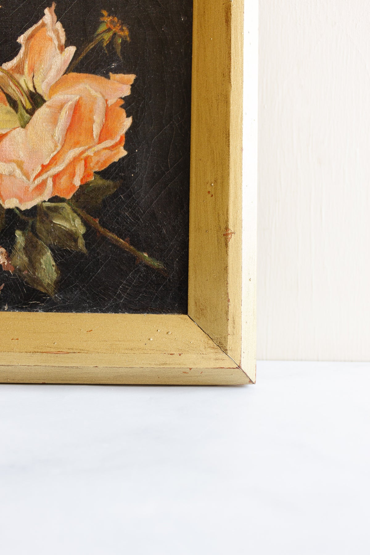 Dramatic antique roses against a black backdrop make for a stunning and elevating addition to your wall.